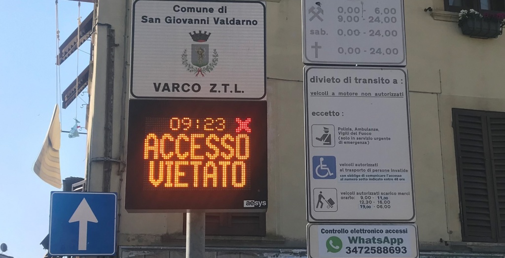 Ingresso in ztl a San Giovanni Valdarno, da oggi si segnala con WhatsApp