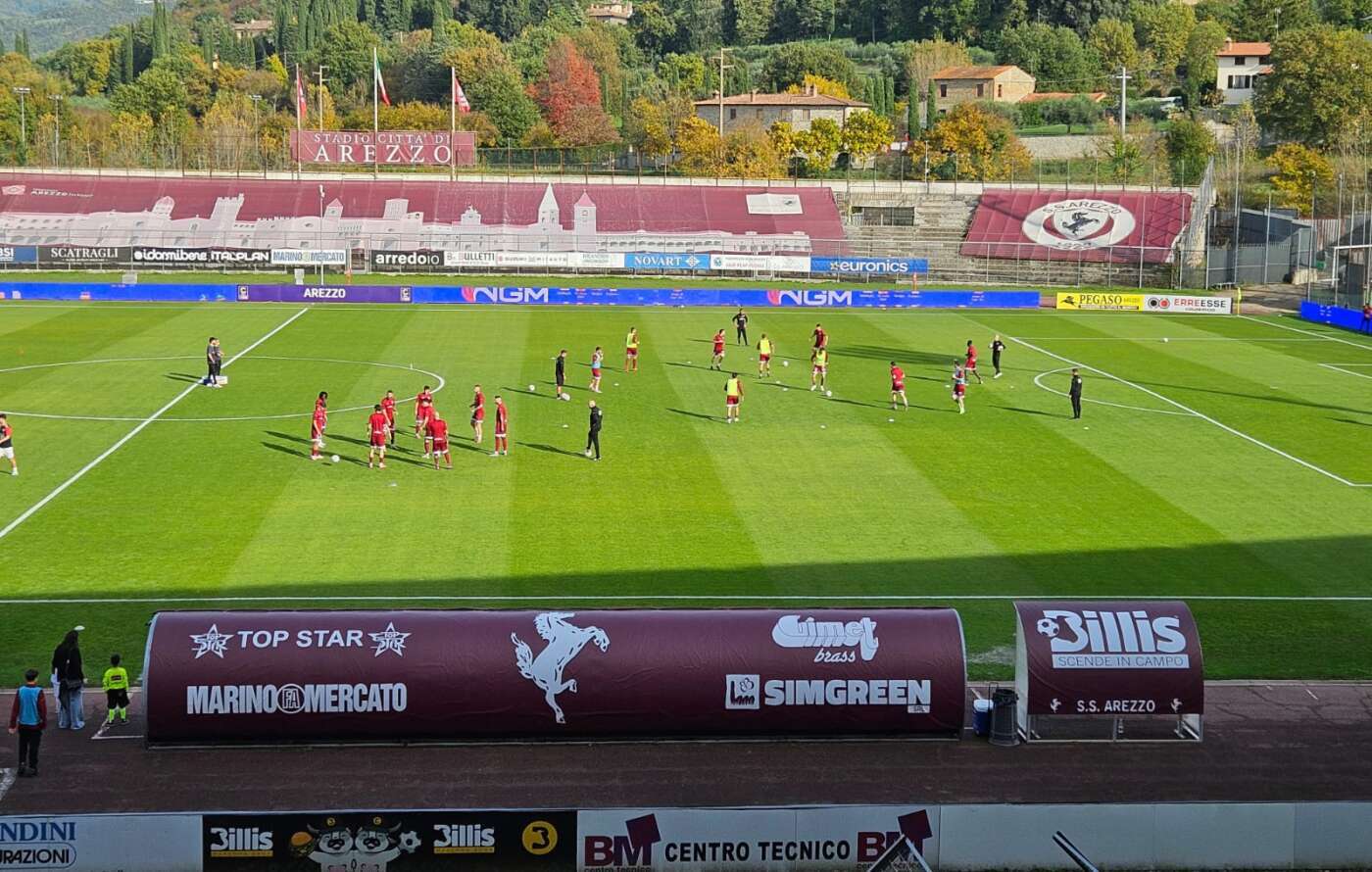 6′ Arezzo pericolosa in avanti: cross di Luciani sul secondo palo dove Belloni non arriva per poco!