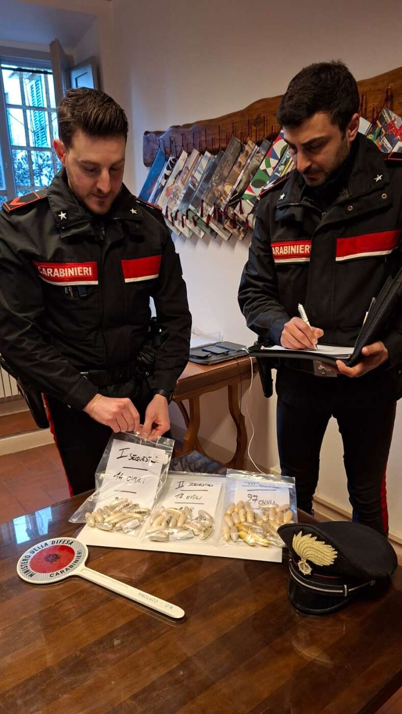 I Carabinieri della Compagnia di Cortona nel primo pomeriggio di domenica, in Foiano della Chiana, hanno intercettavano un’autovettura con cinque giovani a bordo su una strada con notevole traffico di veicoli dovuto anche all’imminente festività di ferragosto. I giovani, che all’atto del controllo hanno da subito insospettito i militari mostrandosi immotivatamente agitati e nervosi, sono stati sottoposti a perquisizione personale e i militari operanti hanno rinvenuto, in possesso di tre di loro, circa 15 grammi di sostanza stupefacente del tipo hashish ed uno spinello già confezionato. Tutta la sostanza stupefacente è stata posta sotto sequestro amministrativo mentre i soggetti sono stati segnalati al Prefetto ai sensi dell’art. 75 del D.P.R. 309/90 come assuntori di sostanze stupefacenti.