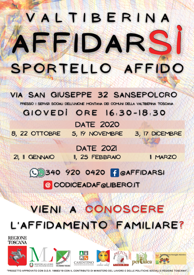 Apre uno sportello informativo sull’affidamento e sull’accoglienza familiare, presso il Servizio Sociale dell’Unione Montana dei Comuni della Valtiberina Toscana, con sede in via San Giuseppe 32 a Sansepolcro