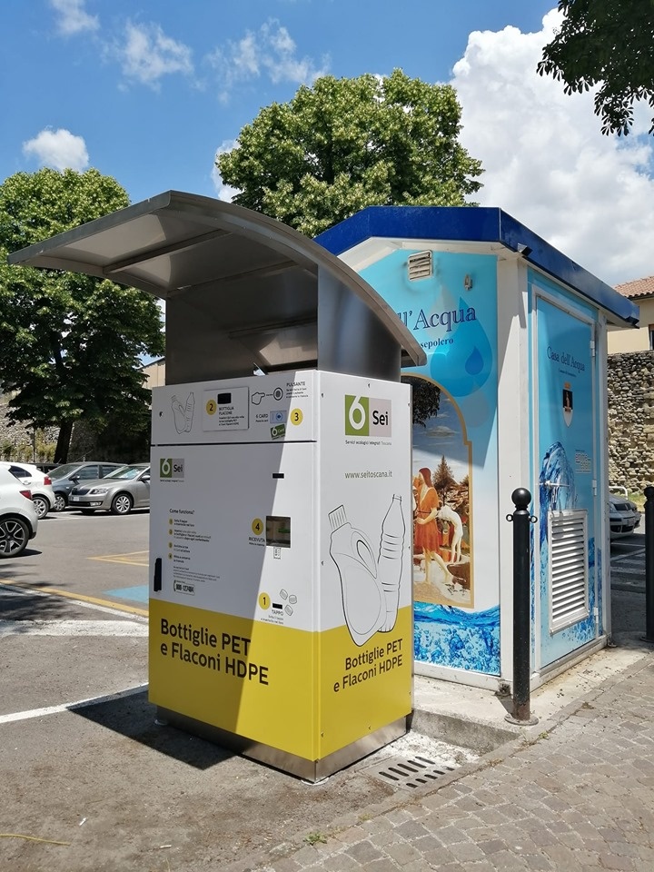Ancora novità per il servizio di raccolta dei rifiuti a Sansepolcro. Dopo gli ottimi risultati registrati con “Differenziare per risparmiare”, il progetto che premia i cittadini più virtuosi nel conferire i propri rifiuti al centro di raccolta (conferimenti che vengono tracciati grazie alla 6Card, la tessera magnetica associata ad ogni utenza Tari del Comune) e le attività di educazione ambientale promosse nelle scuole (il progetto “RI-Creazione” che ha visto la partecipazione di più di 350 studenti e 15 classi delle primarie e secondarie), l’Amministrazione comunale e Sei Toscana hanno potenziato la raccolta della plastica con l’istallazione di tre nuovi eco-compattatori. Le nuove attrezzature, che sono state posizionate a fianco delle tre Casette dell’Acqua, in via Clarke, viale Osimo e in largo Porta del Ponte, sono a disposizione di tutti i cittadini per la raccolta differenziata di imballaggi in plastica, come bottiglie in PET (come le bottiglie dell’acqua) e flaconi in HDPE (ad esempio detersivi). Il modello di macchinario installato è specificamente progettato per assimilare soltanto queste tipologie di materiali quindi si raccomanda di non inserire lattine.