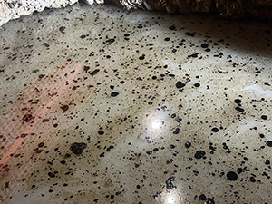 Al momento del sopralluogo, il materiale nella vasca, essendo più leggero dell’acqua, galleggiava in superficie mentre le pompe, trovandosi sul fondo, stavano aspirando acqua presumibilmente non contaminata.