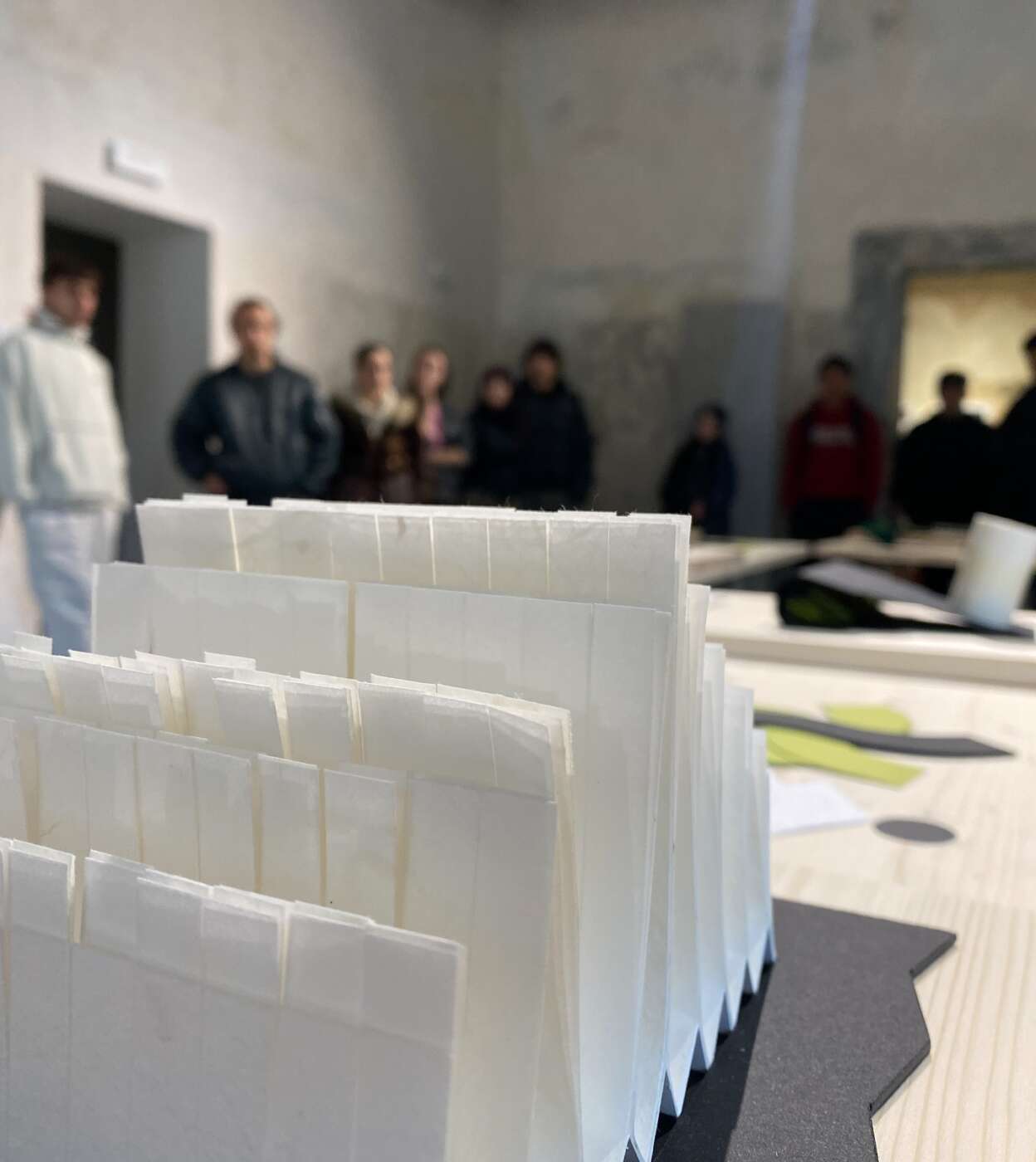 La mostra è esito della residenza dei due artisti, iniziata il 9 Novembre nella residenza artistica di CasermArcheologica, con la curatela di Libri Fatti a Mano di Pieve Santo Stefano Laura Cattabianchi, artista italiana che vive e lavora a Parigi, esprime tutto il potenziale narrativo e poetico della carta, la manipola e si concentra suoi suoni che produce. La sua ricerca si muove tra gesto, ascolto e materia, trasformando elementi quotidiani in esperienze sensoriali e relazionali. Invita piccoli e grandi ad accompagnarla in questa avventura attraverso la creazione di installazioni e libri tattili sonori.