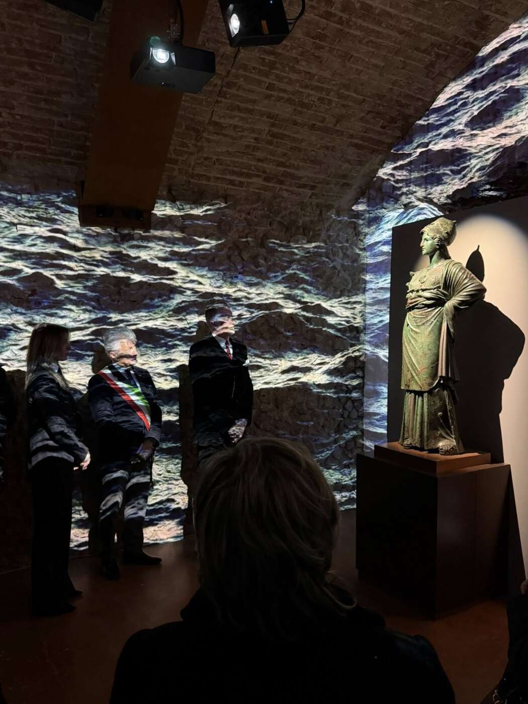 Giuli ha ricordato anche l’origine informale dell’idea del ritorno della Minerva, nata a margine di una visita istituzionale: «Tra spritz e Negroni – ha raccontato sorridendo – con il sindaco, il prefetto, la senatrice Simona Petrucci, il consigliere regionale Gabriele Veneri e i funzionari del ministero ci siamo detti: facciamo tornare la Minerva». E ha aggiunto: «E poi se don Alvaro dice che la Minerva deve tornare, si deve fare», riferendosi al parroco di Colcitrone, il quartiere dove la statua fu rinvenuta nel 1541.