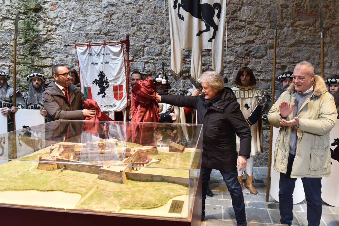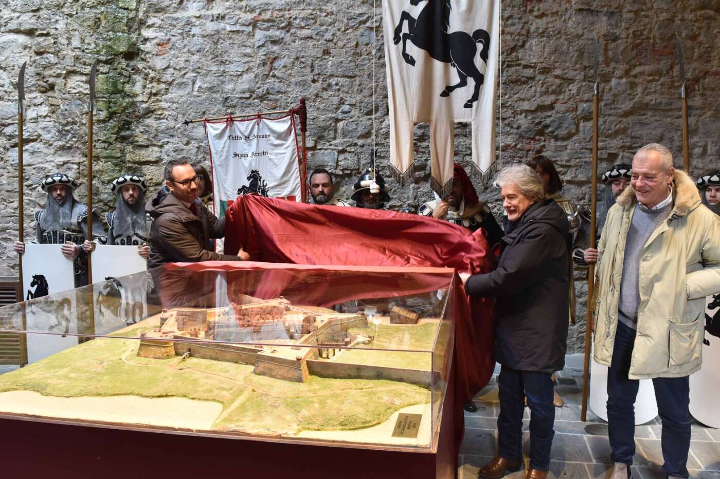 Alla cerimonia sono intervenuti, tra gli altri, il sindaco Alessandro Ghinelli, il consigliere Paolo Bertini, il presidente di Signa Arretii Francesco Stocchi, Marco Giustini, co-autore del plastico, e il videomaker Lorenzo Prodezza, autore del video che entra a far parte del percorso espositivo.
