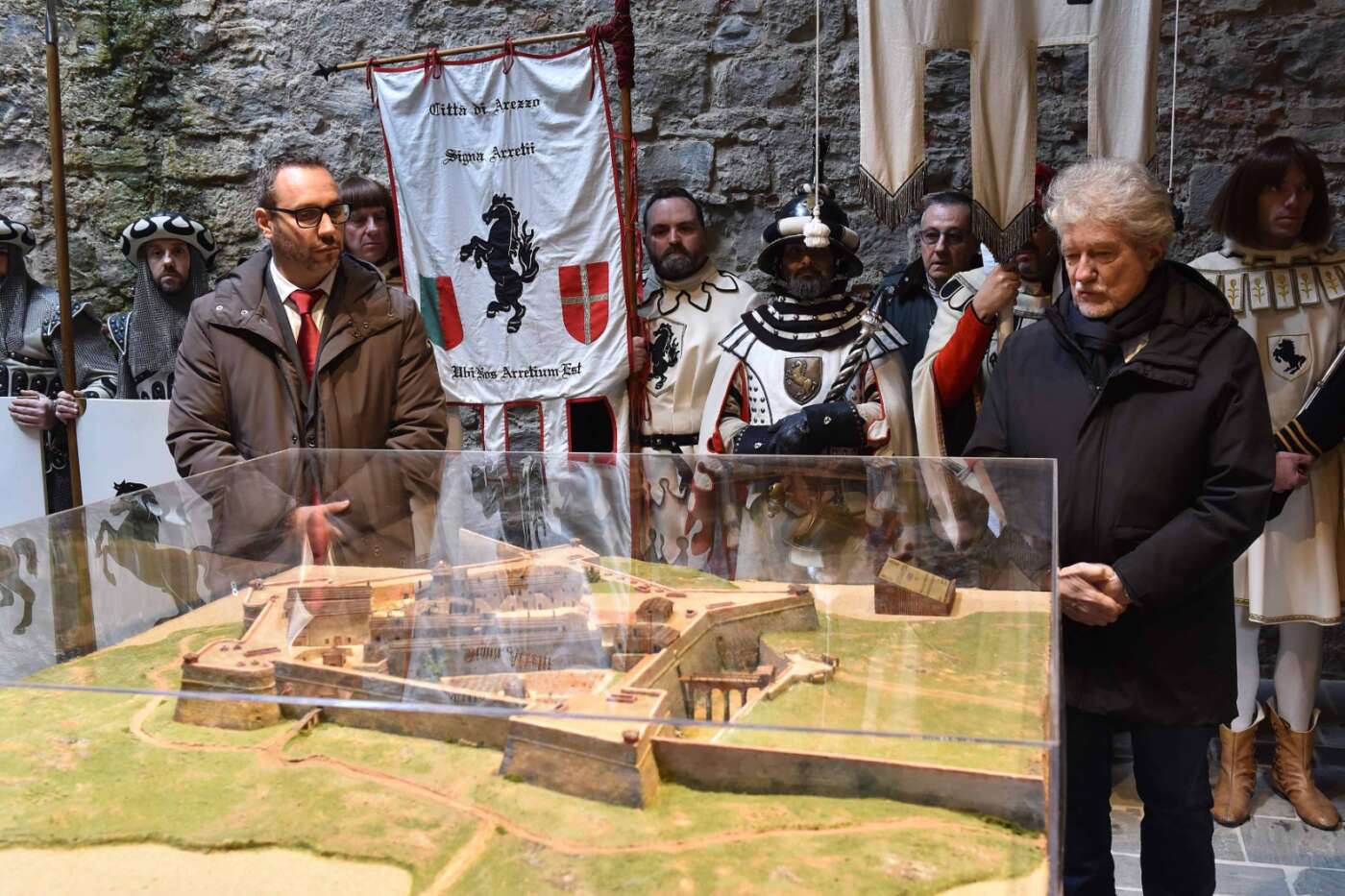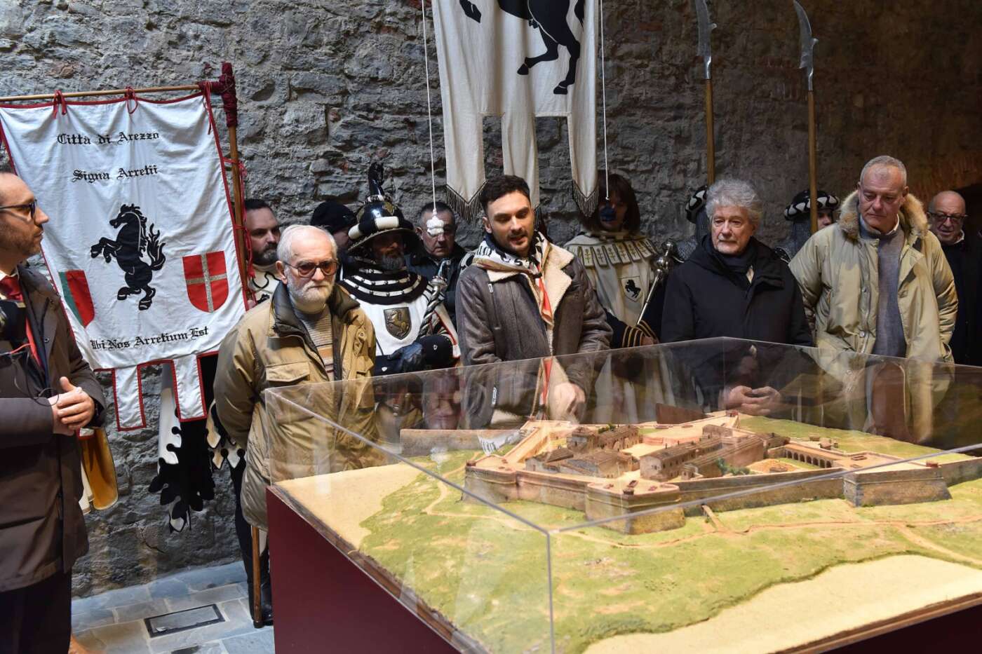 Grande interesse ha suscitato anche il plastico della Fortezza Medicea, tornato stabilmente visibile al pubblico. Realizzato in scala 1:200 dall’associazione Signa Arretii in collaborazione con il Gruppo Fermodellistico Aretino, il modello ricostruisce l’aspetto del complesso nel 1782, al momento del disarmo voluto dal granduca Pietro Leopoldo. Un’opera di grande rigore storico e artigianale, frutto di studi archivistici condotti presso l’Archivio di Stato di Firenze, che restituisce edifici e spazi oggi scomparsi.