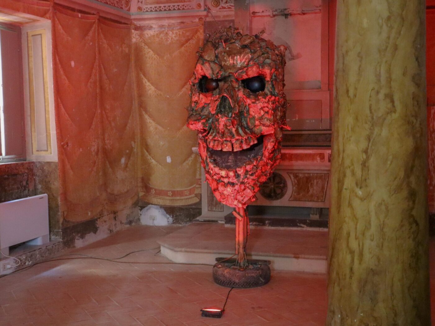 La mostra Minima Carnascialia esplora il carnevale come metafora della condizione umana contemporanea, attraverso l’uso di materiali di recupero e tecniche miste. Le sue installazioni e sculture reinterpretano l’immaginario popolare e la tradizione carnevalesca, svelando le ambiguità del potere e il fragile confine tra protezione e oppressione, tra sicurezza e minaccia. Due le installazioni protagoniste della mostra: “Turisti per sempre” è un fiore meccanico che si apre e si chiude al suono di un allarme, un oggetto apparentemente fragile, ma feroce nei dettagli, i cui petali riportano i nomi delle vittime di violenze, trasformandoli in memoria visiva; Memento Oculus, invece, è un teschio informe con due occhi pulsanti (rosso e blu) che veglia sul fiore come simbolo di un potere che osserva, giudica e segna. La visita del Sindaco Franci rappresenta un ulteriore riconoscimento per il talento e l’impegno di Giosuè Vendepane, che con la sua opera contribuisce a tenere viva la tradizione creativa e culturale di Foiano della Chiana.