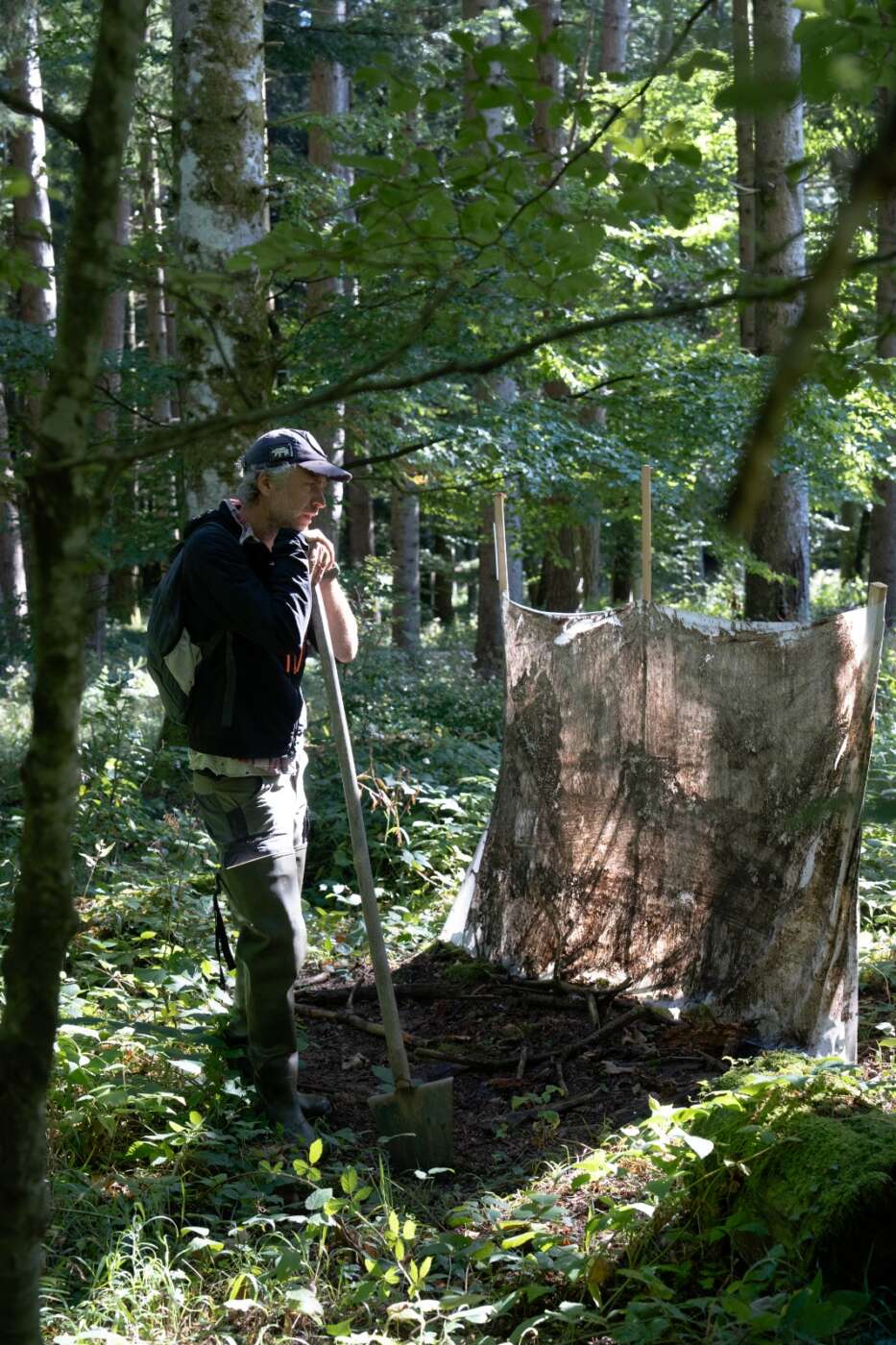Le tele installate da Ghezzi nei diversi ambienti del Parco, dalle faggete d’alta quota alle abetine secolari, dai corsi d’acqua ai boschi umidi, sono rimaste esposte, da luglio a settembre 2025, agli effetti del tempo e agli agenti naturali. Su di esse si sono depositati sedimenti, residui organici, tracce della fauna, microrganismi e variazioni dovute a luce, umidità e condizioni climatiche. Le opere ottenute sono così divenute oggi esiti visivi di un processo in cui l’artista e l’ambiente agiscono insieme.