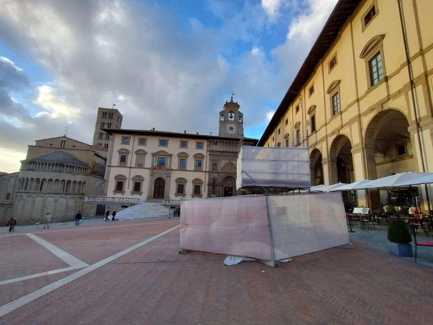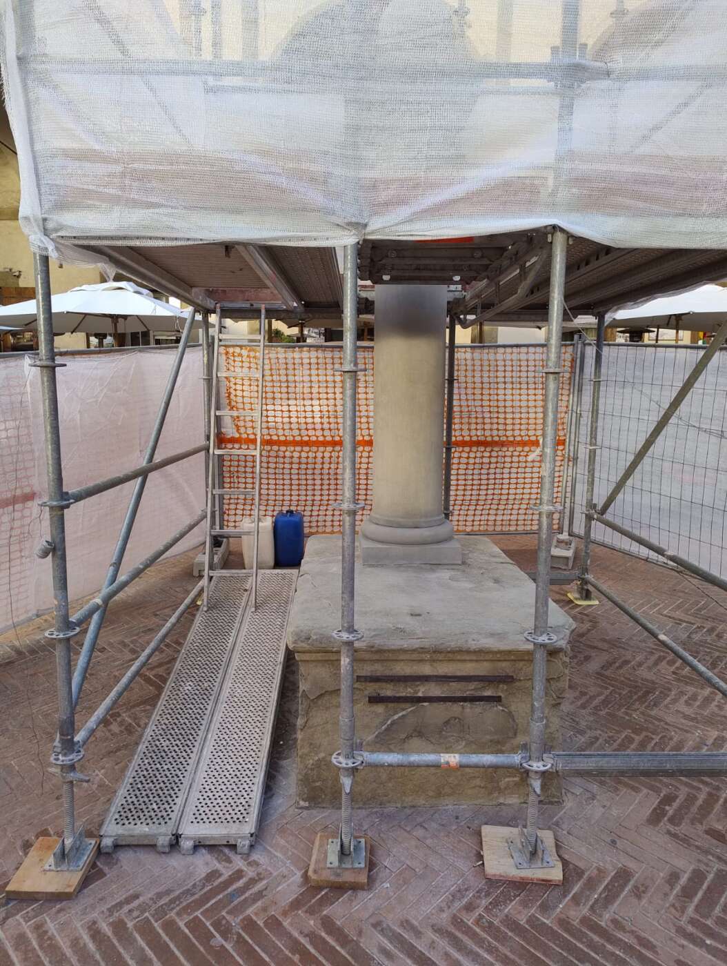 Arezzo – Si è conclusa nella giornata odierna l’operazione di installazione della nuova copia del cosiddetto “Petrone”, noto anche come “Colonna Infame”, uno dei simboli più riconoscibili di Piazza Grande. La precedente colonna, risalente al 1932, presentava un avanzato stato di degrado, come evidenziato dalle approfondite analisi e dalle prove diagnostiche succedutesi nel tempo. Le indagini avevano infatti rilevato la presenza diffusa di patologie in grado di compromettere non solo le qualità estetiche del monumento, ma anche le sue caratteristiche meccanico–strutturali. Ragioni che hanno portato alla decisione di sostituire l’elemento, al fine di garantirne la conservazione e la sicurezza. La progettazione e la realizzazione della nuova colonna sono state portate avanti in costante collaborazione con la Soprintendenza Archeologia, Belle Arti e Paesaggio, con l’obiettivo di assicurare la massima fedeltà rispetto all’originale. Un contributo determinante in questo senso è giunto dal ritrovamento, presso l’Archivio Storico, dei disegni originali, che hanno permesso una ricostruzione estremamente accurata nei materiali e nelle forme. “Nei prossimi giorni – ha dichiarato l’assessore Alessandro Casi – avranno inoltre inizio i lavori di restauro e consolidamento del basamento, che consentiranno di restituire al monumento e alla piazza la piena integrità e la completezza del suo valore storico e simbolico”.
