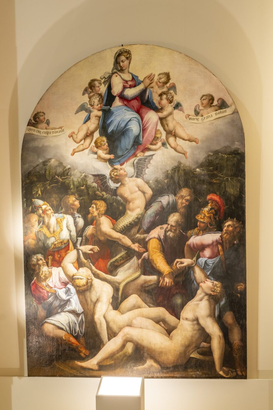 Ancora: “Vasari e l’Arte Sacra”, sezione tematica dedicata alle committenze pubbliche e private che avrà il suo apice in opere che arrivano ad Arezzo in via del tutto eccezionale, come la “Sacra Famiglia”, la “Crocifissione con la Madonna, san Giovanni e santa Maria Maddalena” e il “Cristo portacroce” da collezioni private, oltre ai tondi provenienti dagli altari non più esistenti di Santa Maria Novella a Firenze, esposti per la prima volta. I disegni, che per Vasari erano ideazione e progettazione alla base di ogni opera – sia essa in pittura, scultura, architettura o arti applicate – saranno centrali in “Il Disegno, padre delle Arti”. Moltissimi quelli esposti, provenienti da Torino, Vienna, Roma, Firenze e New York e da Parigi – di cui nove tra schizzi e cartonetti preparatori per il “Giudizio Universale” della Cupola di Santa Maria del Fiore, completata poi da Federico Zuccari. E poi “La Chimera, Vasari e il Duca”, ovvero la genialità dell’artista “comunicatore”. Al ritrovamento dello strepitoso bronzo etrusco, scoperto ad Arezzo e condotto trionfalmente a Firenze, l’intervento di Vasari fu rapido e perspicace: lo inserì nella propaganda politica di Cosimo, come simbolo di una civiltà precedente all’autorità della Roma imperiale e antenata dalla Toscana moderna. Infine la sezione dedicata a “Pitture monumentali in chiese e basiliche”, con quattro tra le più grandiose pale dipinte da Vasari tra il 1545 e il 1569, mai uscite dalle sedi originali durante gli ultimi due secoli, come l’”Allegoria dell’Immacolata Concezione” dalla chiesa dei Santi Apostoli a Firenze e l’”Adorazione dei Magi” dal complesso monumentale di Santa Croce e Ognissanti di Bosco Marengo in Piemonte.
