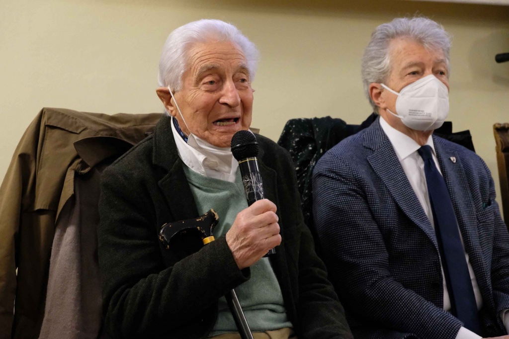 Nella foto: l’ex sindaco Luigi Lucherini con l’attuale sindaco Alessandro Ghinelli all’intitolazione della sala delle vittorie a Palazzo San Giusto a Faliero Papini