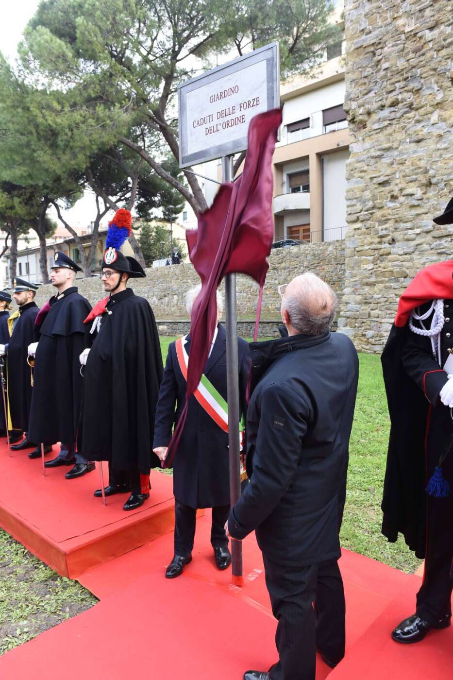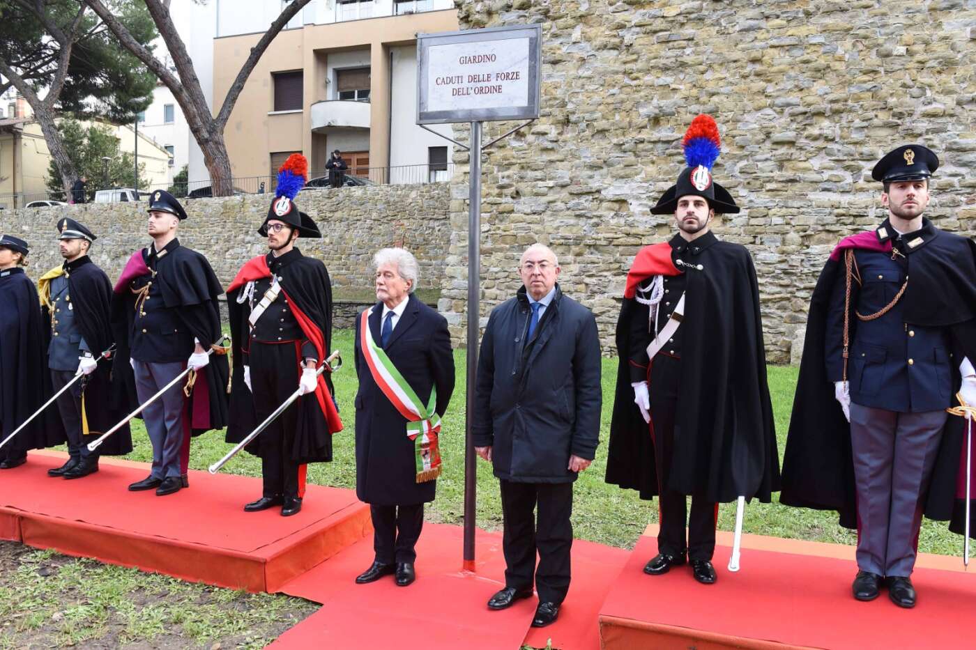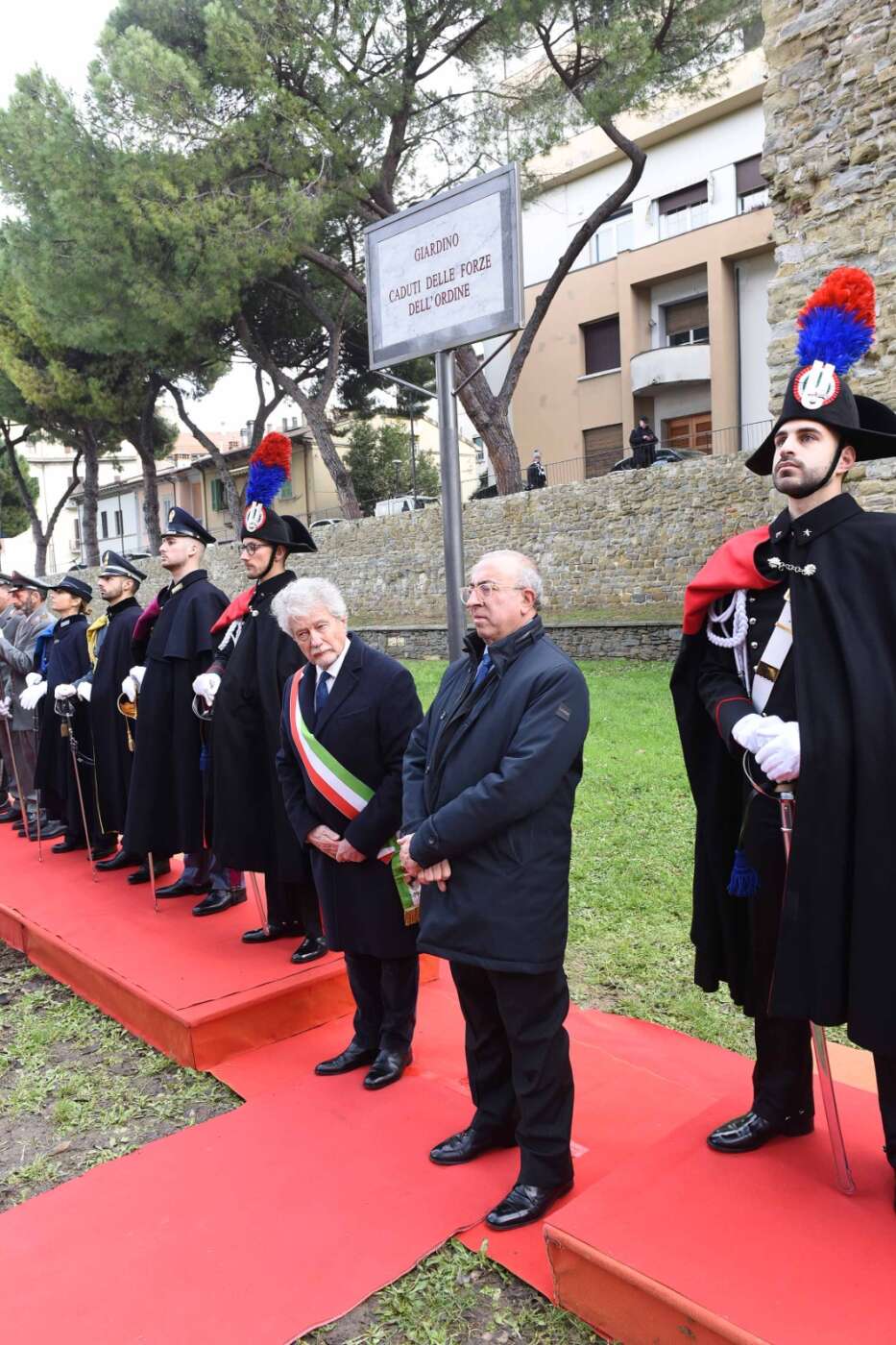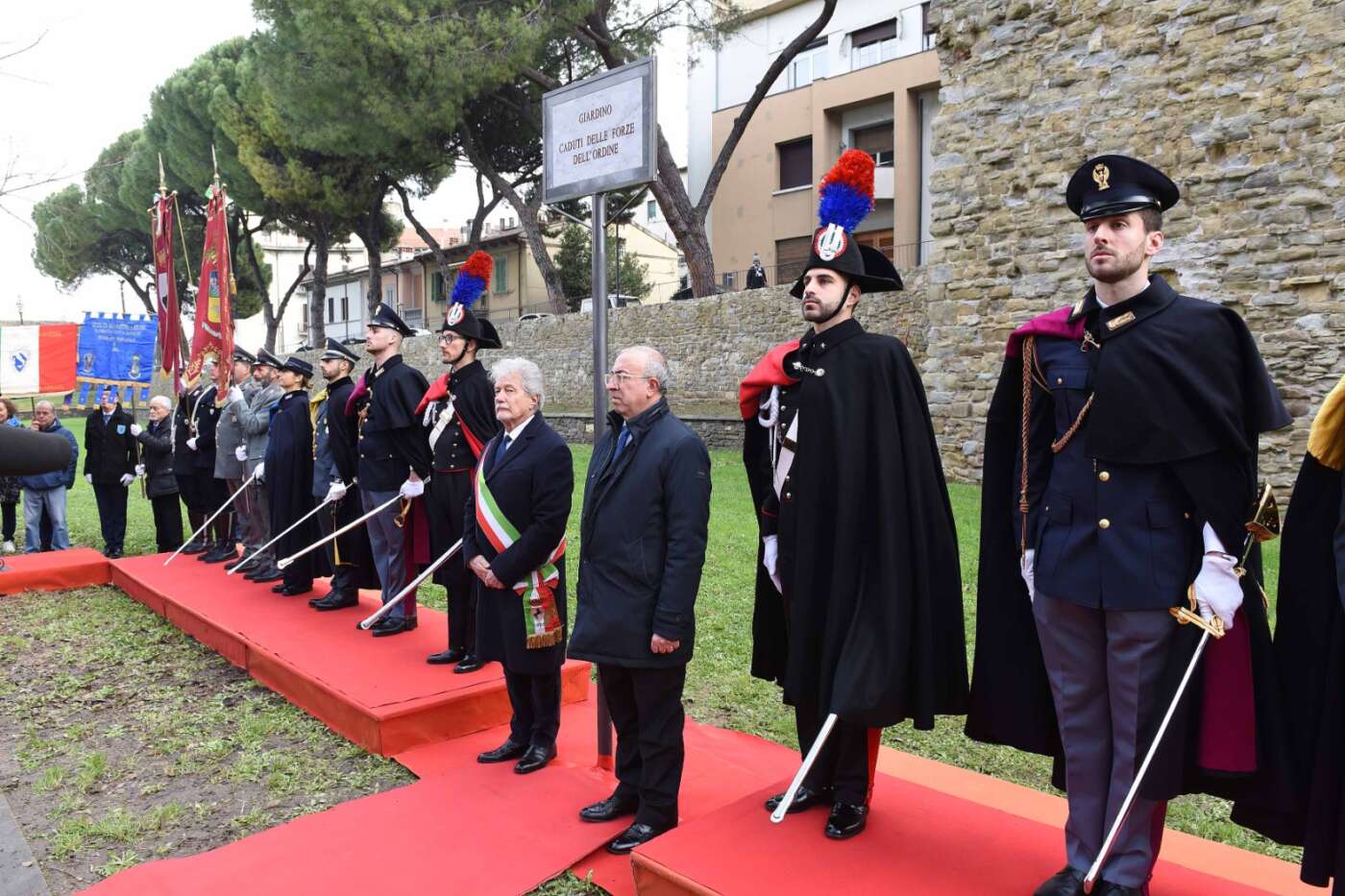 “La scelta del luogo non è casuale – ha dichiarato il sindaco Alessandro Ghinelli. – Il giardino si trova lungo uno degli assi viari più centrali e transitati della città di Arezzo, uno spazio attraversato quotidianamente da migliaia di persone. Proprio qui la memoria si intreccia con la vita di ogni giorno, diventando visibile, condivisa e viva. Intitolare questo spazio ai Caduti delle Forze dell’Ordine – ha continuato il sindaco – significa affermare con forza che la memoria non è un atto formale, ma un impegno quotidiano. Qui, in un luogo vissuto ogni giorno da tanti cittadini, vogliamo ricordare chi ha scelto di servire lo Stato e la collettività, spesso affrontando rischi enormi e talvolta pagando il prezzo più alto. A loro dobbiamo gratitudine, rispetto e la responsabilità di non dimenticare”.