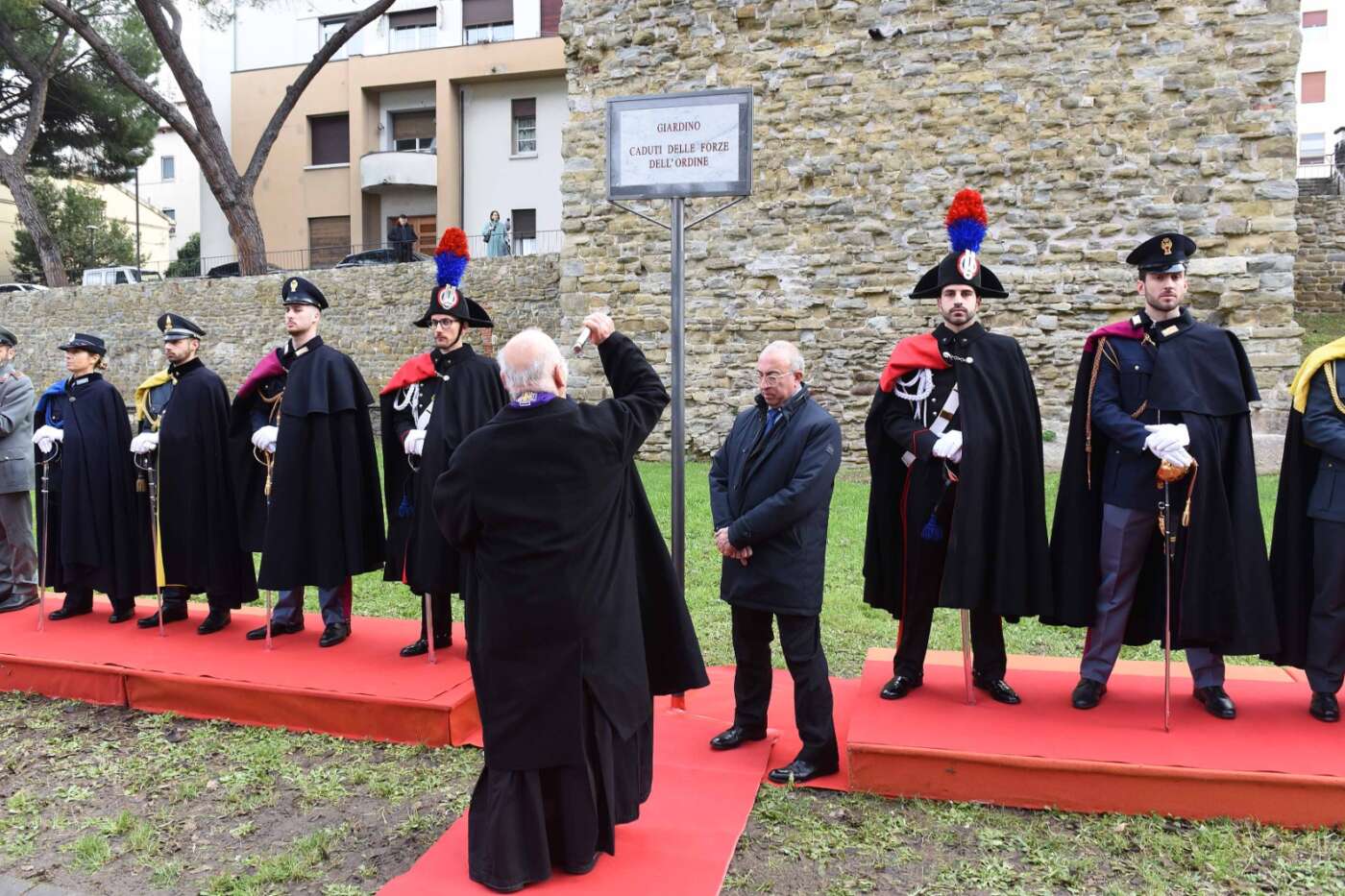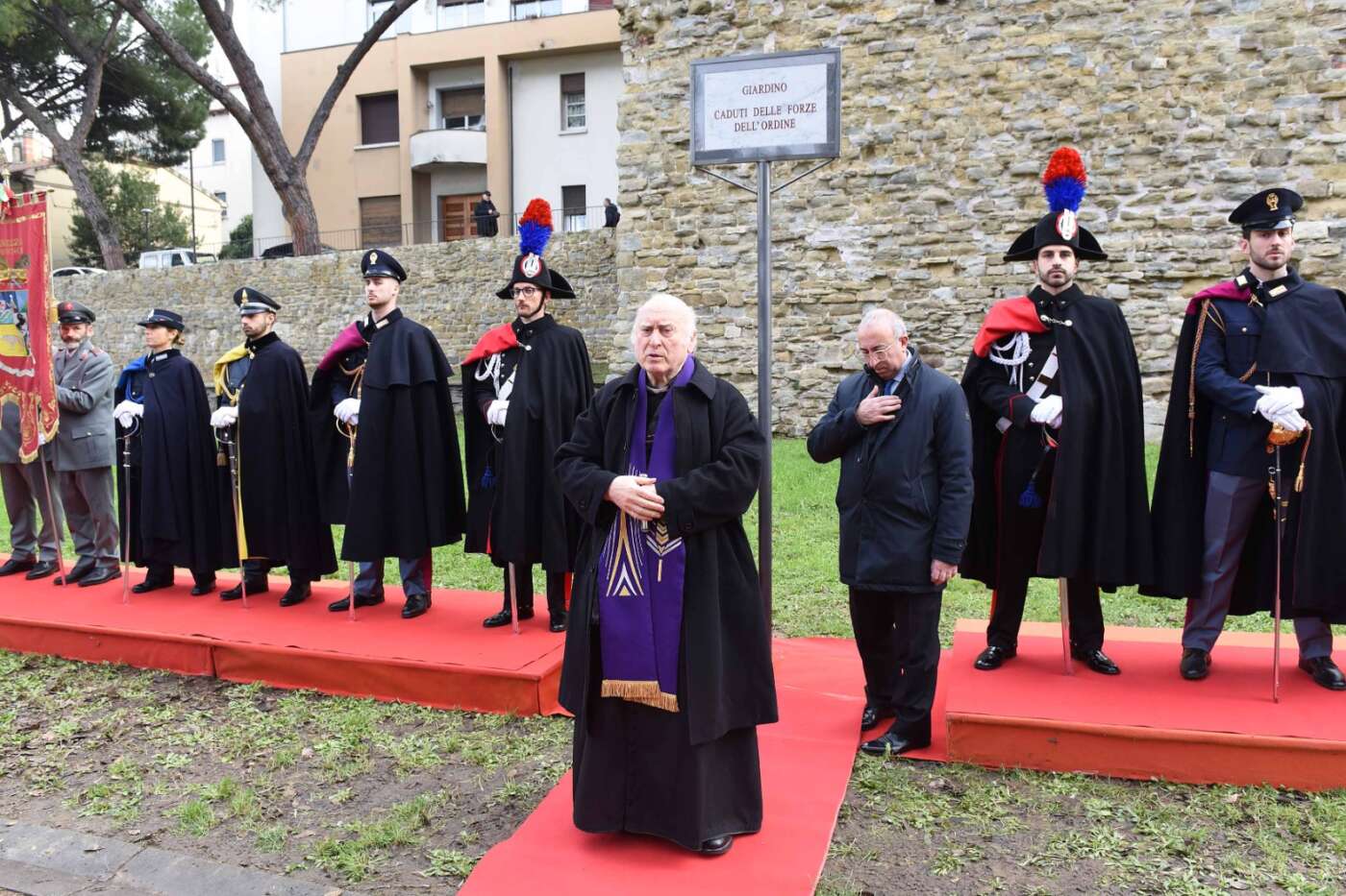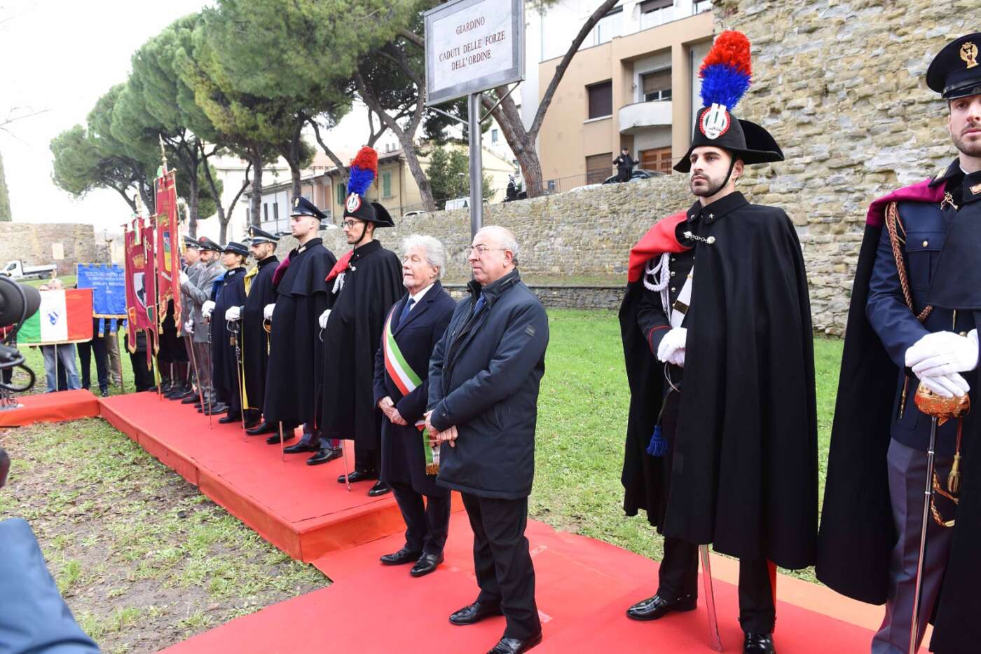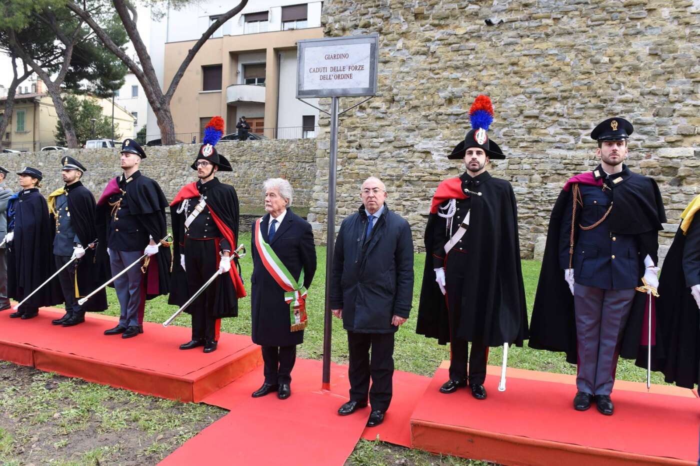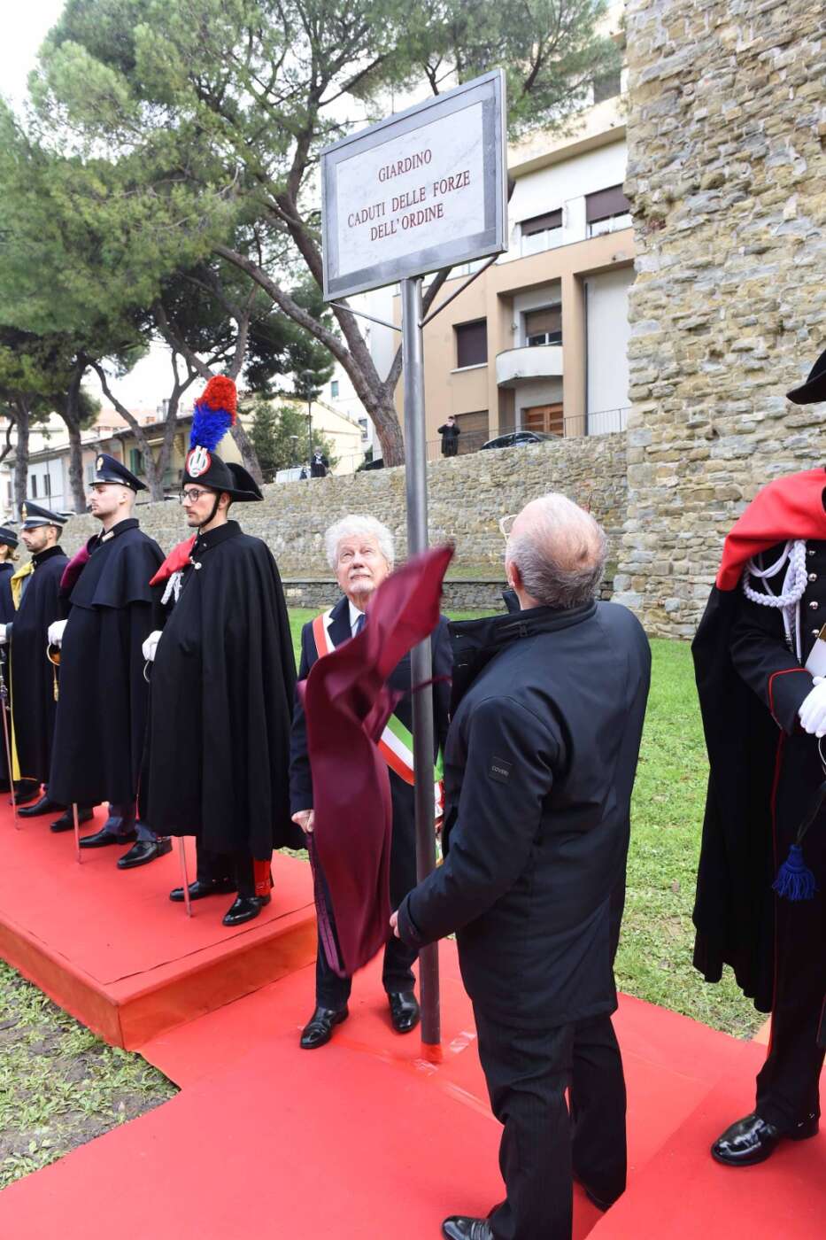 “La scelta del luogo non è casuale – ha dichiarato il sindaco Alessandro Ghinelli. – Il giardino si trova lungo uno degli assi viari più centrali e transitati della città di Arezzo, uno spazio attraversato quotidianamente da migliaia di persone. Proprio qui la memoria si intreccia con la vita di ogni giorno, diventando visibile, condivisa e viva. Intitolare questo spazio ai Caduti delle Forze dell’Ordine – ha continuato il sindaco – significa affermare con forza che la memoria non è un atto formale, ma un impegno quotidiano. Qui, in un luogo vissuto ogni giorno da tanti cittadini, vogliamo ricordare chi ha scelto di servire lo Stato e la collettività, spesso affrontando rischi enormi e talvolta pagando il prezzo più alto. A loro dobbiamo gratitudine, rispetto e la responsabilità di non dimenticare”.