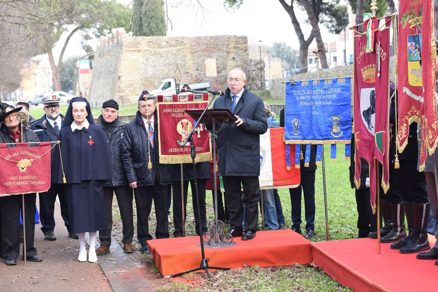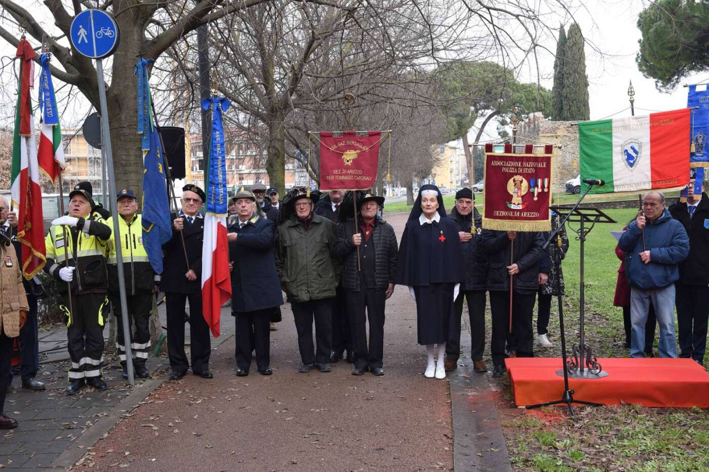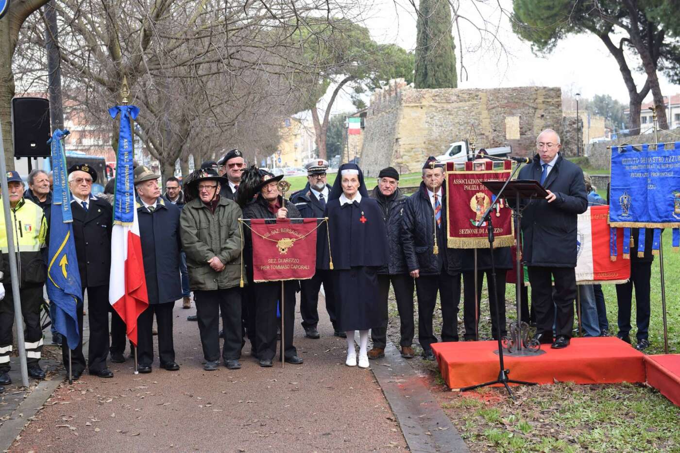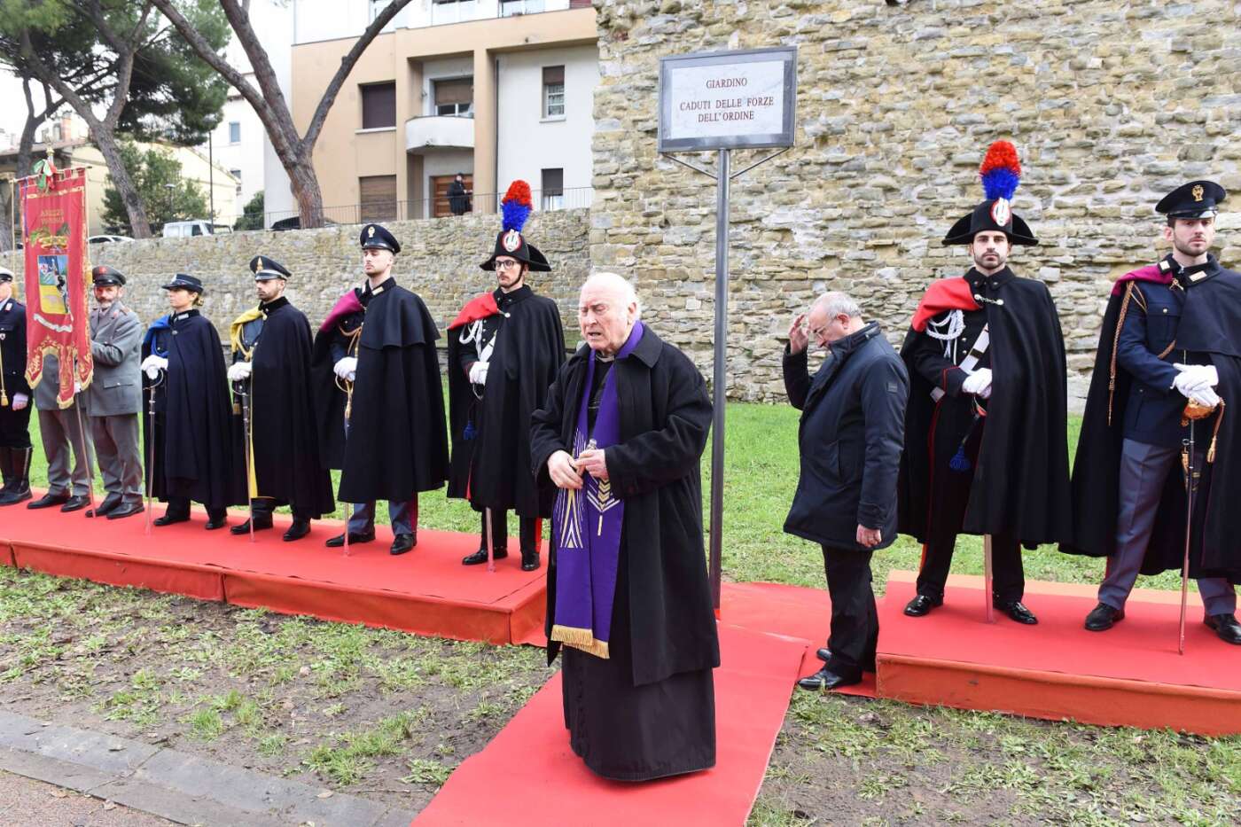 “La scelta del luogo non è casuale – ha dichiarato il sindaco Alessandro Ghinelli. – Il giardino si trova lungo uno degli assi viari più centrali e transitati della città di Arezzo, uno spazio attraversato quotidianamente da migliaia di persone. Proprio qui la memoria si intreccia con la vita di ogni giorno, diventando visibile, condivisa e viva. Intitolare questo spazio ai Caduti delle Forze dell’Ordine – ha continuato il sindaco – significa affermare con forza che la memoria non è un atto formale, ma un impegno quotidiano. Qui, in un luogo vissuto ogni giorno da tanti cittadini, vogliamo ricordare chi ha scelto di servire lo Stato e la collettività, spesso affrontando rischi enormi e talvolta pagando il prezzo più alto. A loro dobbiamo gratitudine, rispetto e la responsabilità di non dimenticare”.