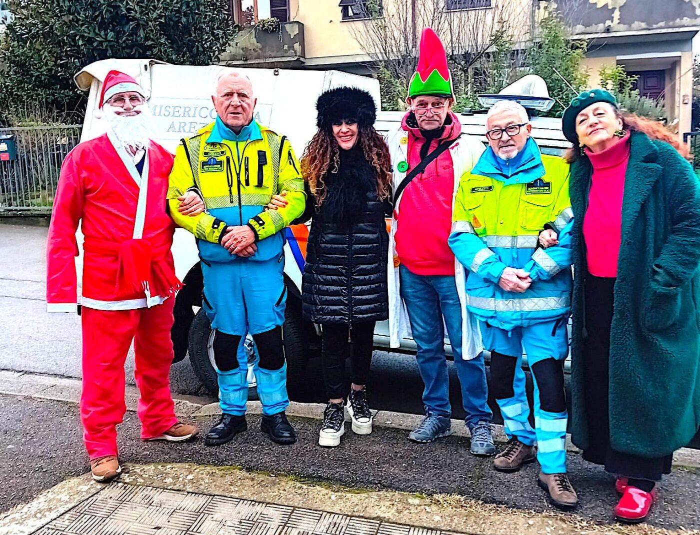 Nella fattispecie la Misericordia di Arezzo, intervenuta allo scopo con un mezzo speciale solitamente impiegato in Protezione Civile, provvederà a distribuirli con relativi bigliettini al seguito, messi a punto dai bambini stessi in modo che arrivino: 1-Alle famiglie già segnalate dai Servizi Sociali del Comune nelle procedure di gestione e distribuzione del “Banco Alimentare ©”; 2-All’Istituto Thevenin di Arezzo; 3-alla ludoteca del reparto di Pediatria dell’Ospedale San Donato…il tutto in altrettante date da definirsi nei prossimi giorni ma comunque in tempo utile per il Natale.