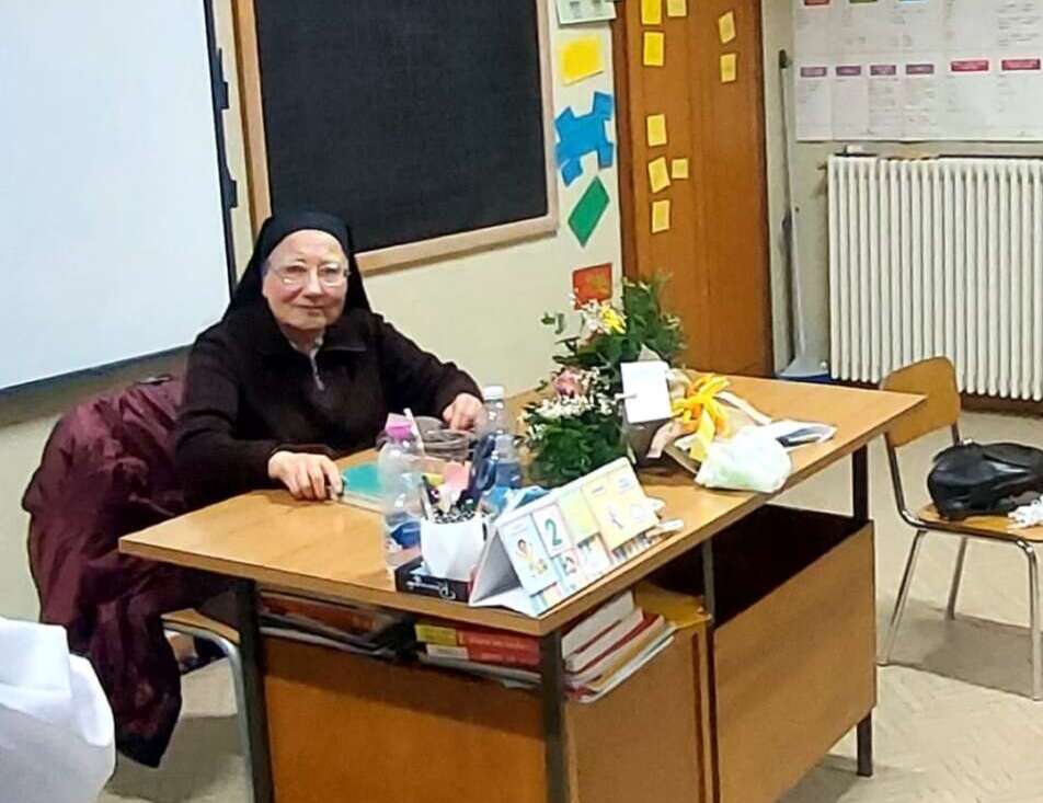 Il momento più intenso della giornata è stato l’ingresso in classe di Suor Gabriella Pascucci, accompagnata con un pretesto dalla direttrice e completamente ignara di ciò che stava per accadere. Davanti a lei ha trovato i suoi primi allievi, la prima classe della sua carriera di insegnante. La sorpresa ha lasciato spazio a commozione, abbracci e ricordi condivisi. In quell’istante, come hanno commentato alcuni ex alunni, «abbiamo visto l’Amore vincere».