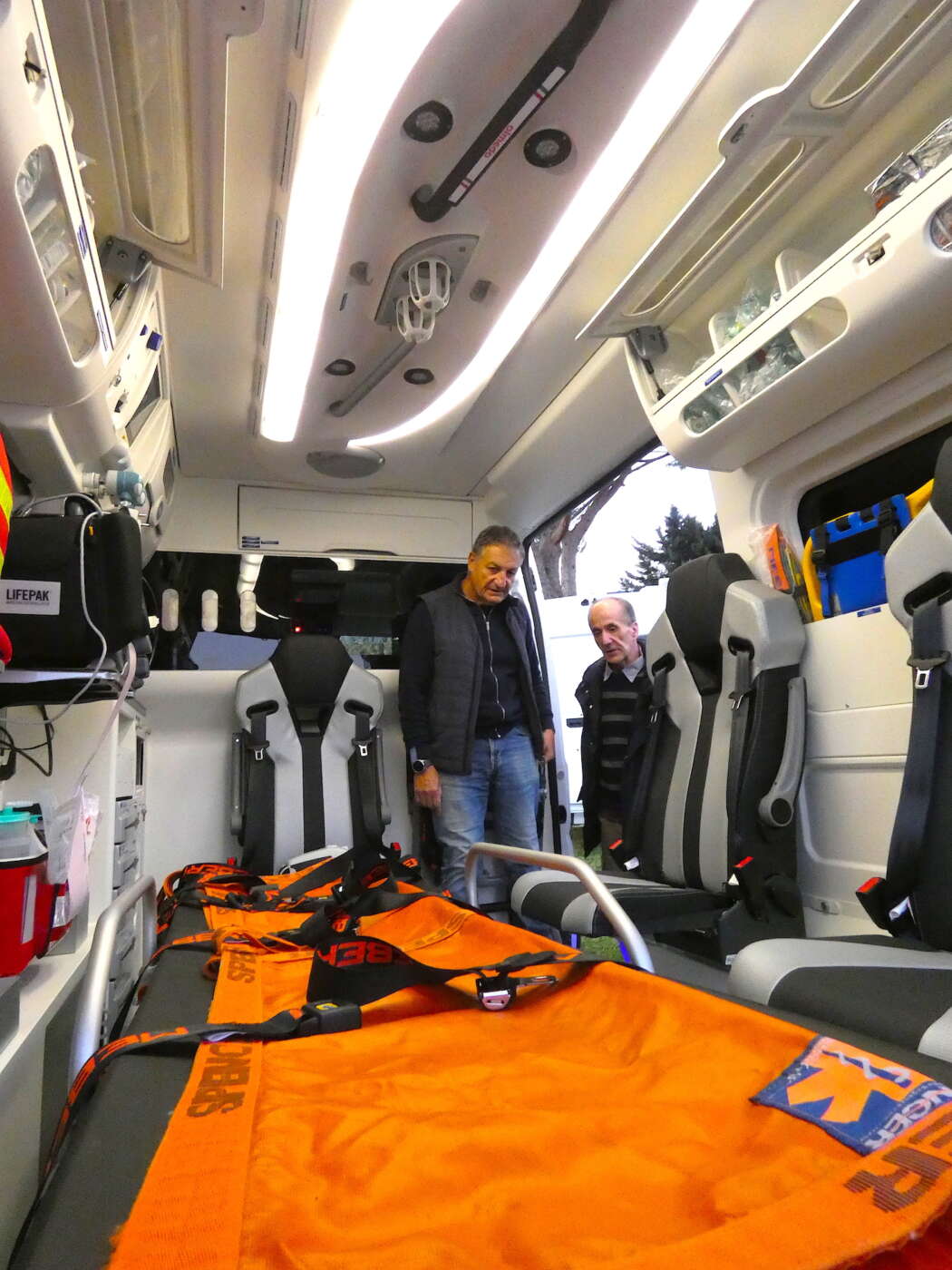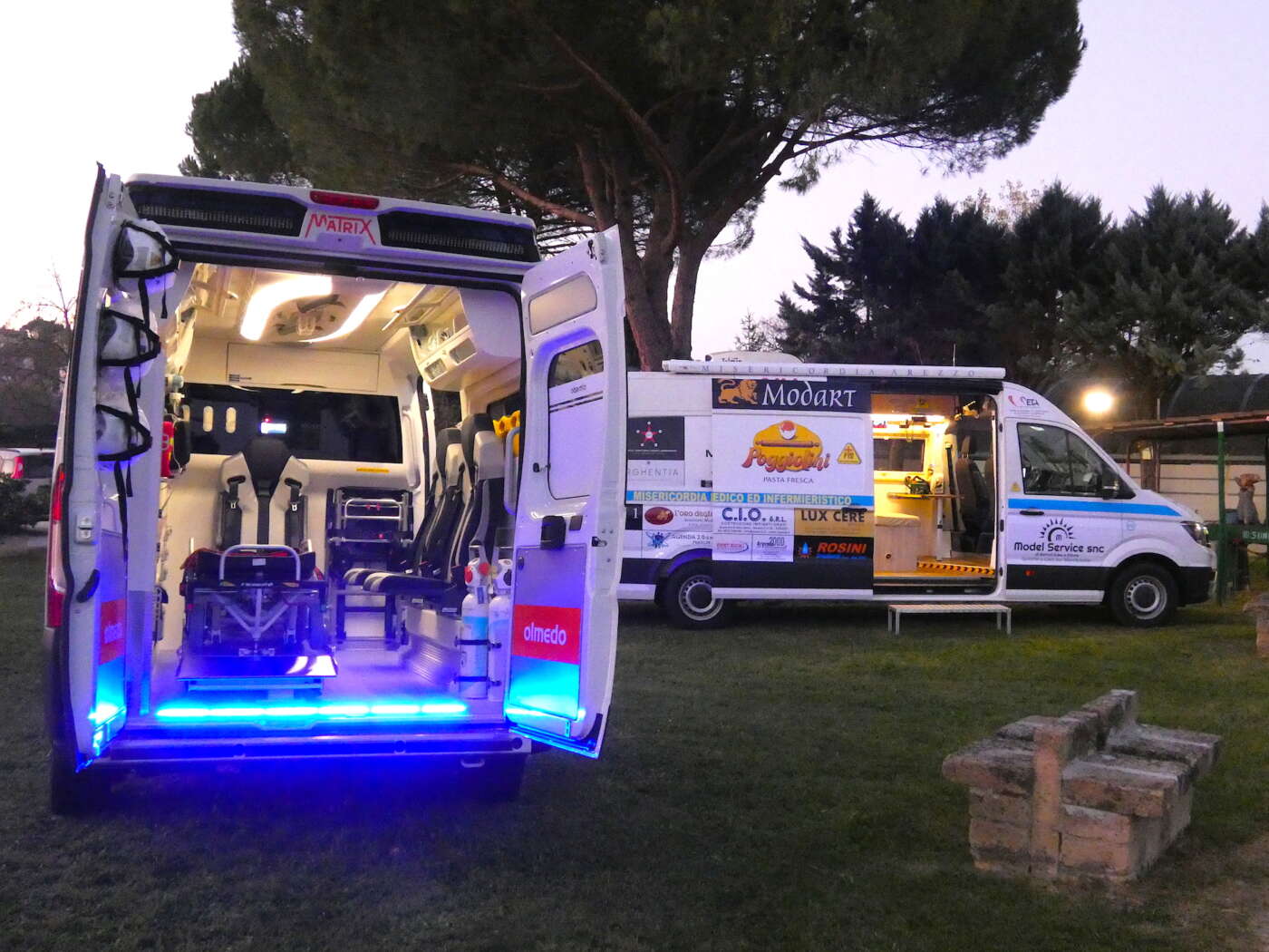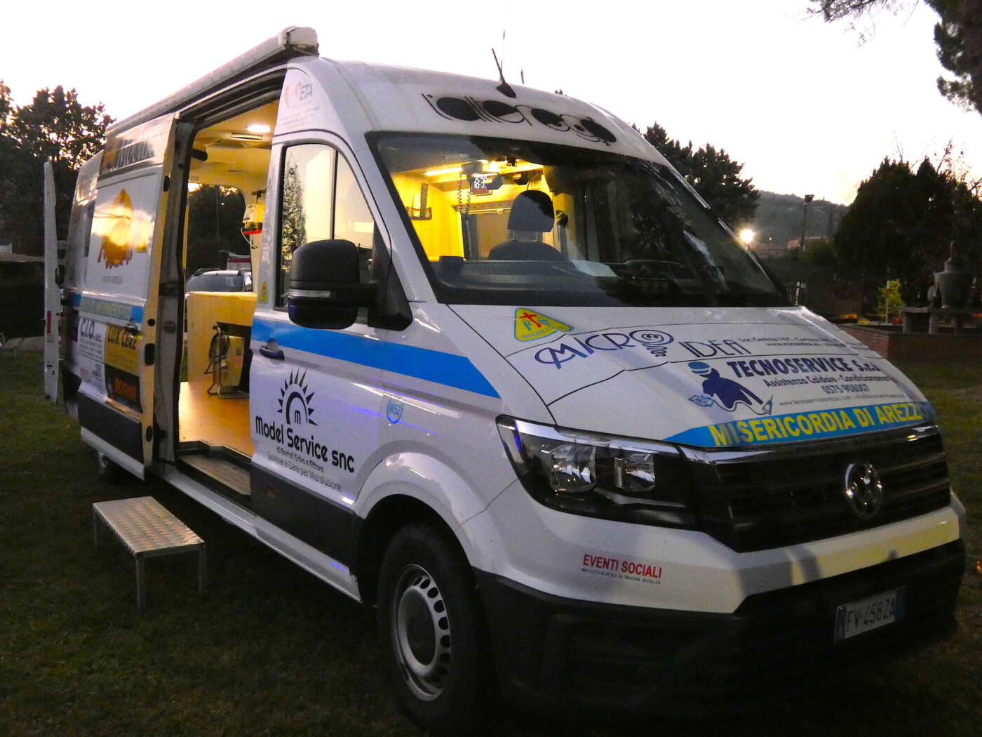 - Esposizione dimostrativa – in esterno – dei mezzi attrezzati da trasporto sanitario (pulmino con pedana elettrificata di sollevamento, carrozzina elettrica ecc) e/o speciali di Protezione Civile in dotazione alla Confraternita, inclusi l’Ambulatorio mobile/Camper sanitario del “Punto Salute”, configurabile anche quale Posto Comando Avanzato, nonché abilitato Unicef per fungere da Baby Pit Stop, ossia postazione di supporto ai neo-genitori (allattamento, cambio pannolini) in area sicura, igienizzata e riservata; e l’Ambulanza con Soccorritori disponibile sul posto per illustrazione degli interni e dimostrazioni di manovre rianimatorie, come defibrillazione, disostruzione ecc.