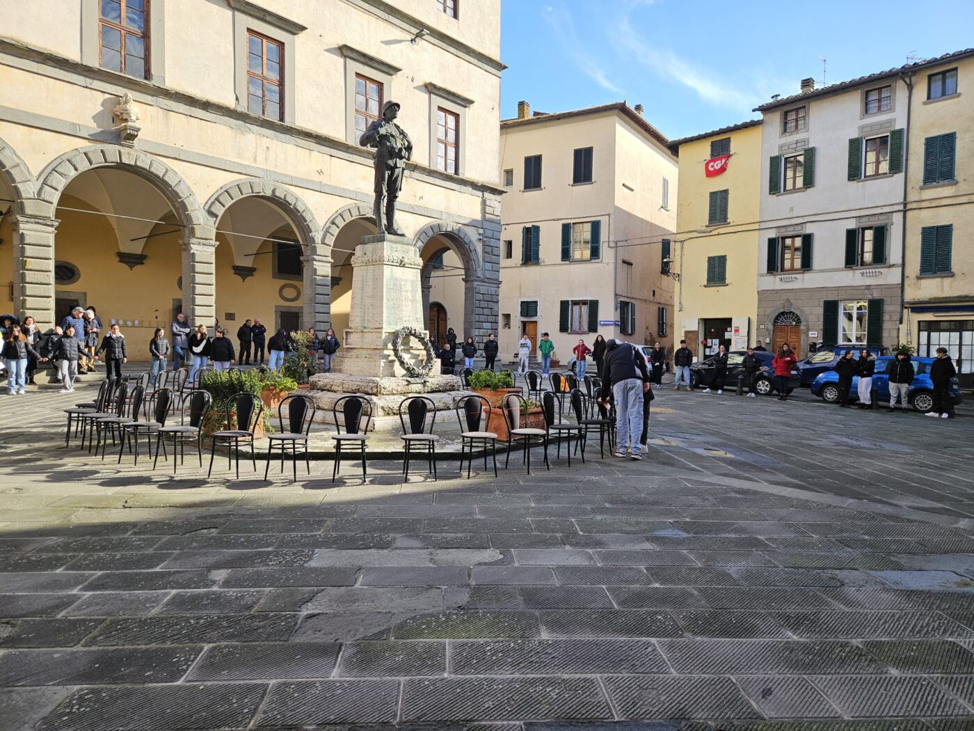 L’installazione è stata completata con il contributo fondamentale degli studenti delle classi terze medie dell’Istituto Omnicomprensivo G. Marcelli. Il loro impegno nel creare questo momento simbolico dimostra come il passaggio della memoria alle nuove generazioni sia essenziale per garantire che il ricordo resti vivo e che i valori di pace, rispetto e umanità continuino a guidare le nostre azioni future. L’iniziativa ha coinvolto simultaneamente i Comuni di Castiglion Fiorentino, Civitella in Val di Chiana, Cortona, Foiano della Chiana, Lucignano, Marciano della Chiana e Monte San Savino, creando un legame simbolico tra le comunità della Valdichiana Aretina. Ogni piazza è stata un luogo di riflessione, con lo stesso messaggio: la memoria non è solo un ricordo, ma un impegno vivo e collettivo per evitare che la storia possa ripetersi.