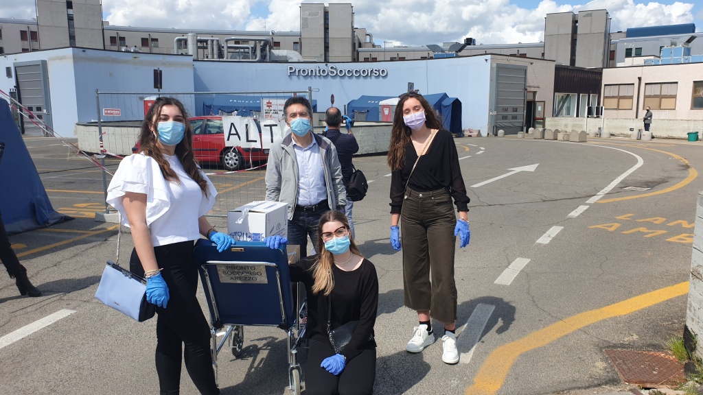 Le rappresentanti d’Istituto Alessia Maggini, Clea Kapxhiu, Sofia Branchi, alla presenza del Dirigente Scolastico Dr. Maurizio Gatteschi, mantenendo le distanze dovute e indossando la mascherina, hanno consegnato il materiale igienizzante al Primario dr. Giannelli e al Direttore dottor Genc Kapxhiu, padre della rappresentante d’istituto, che aveva indicato questa necessità del presidio ospedaliero aretino.