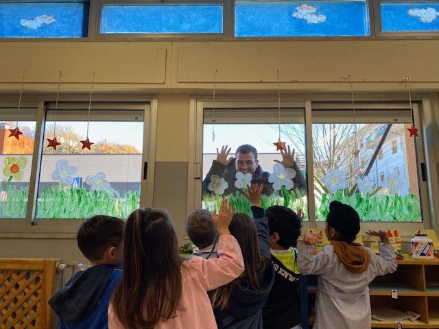 Il primo cittadino di Bibbiena ha infatti stretto le mani e abbracciato i bimbi attraverso i vetri della scuola per fare loro il suo speciale augurio di Natale.