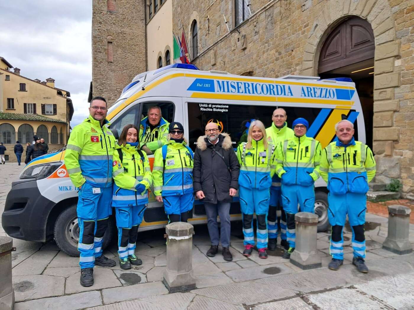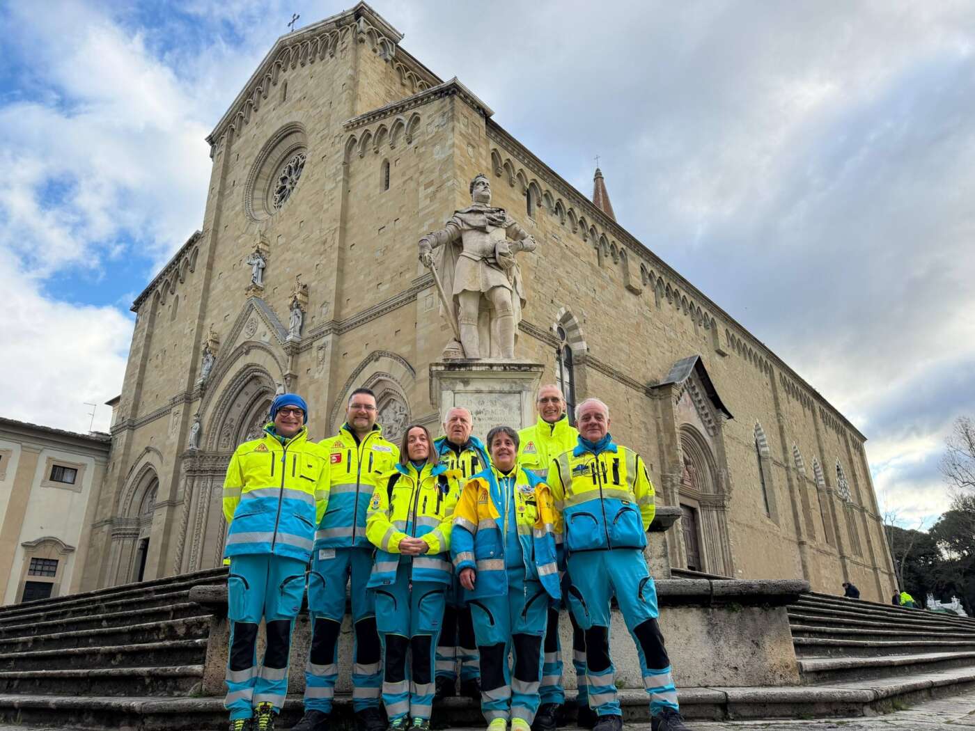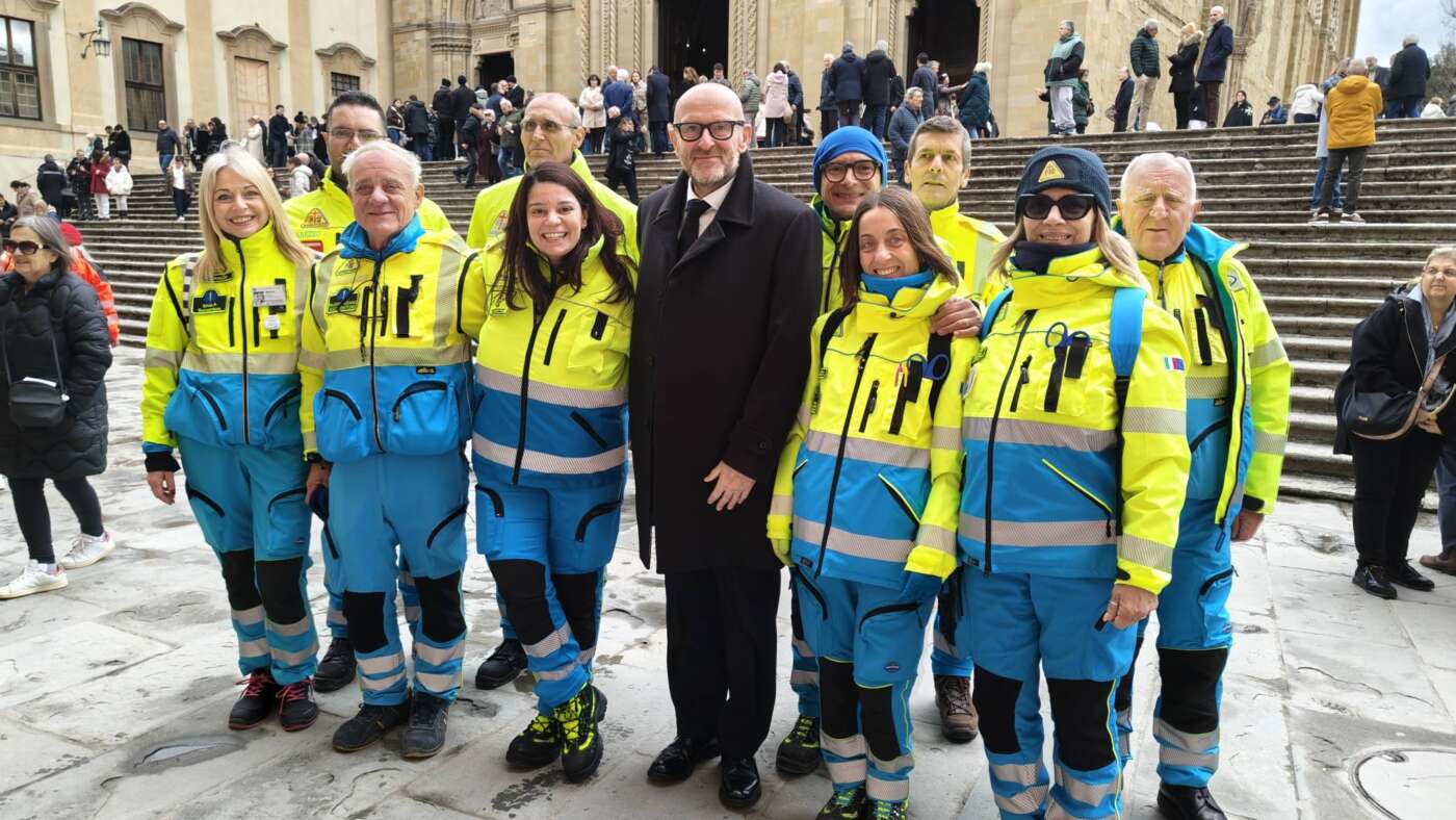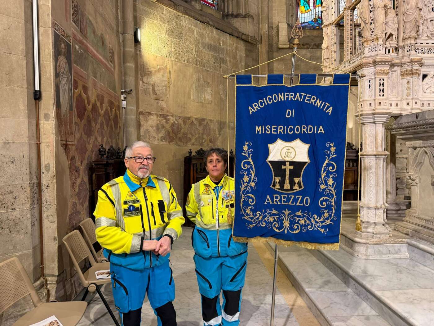 E, come si coglie tra le molte foto che seguono, a portare man forte agli equipaggi della Misericordia di Arezzo impegnati sia nell’assistenza di sicurezza sanitaria sul sagrato del Duomo, sia all’interno della cattedrale (in questo caso anche con volontari addetti alla rappresentanza della Confraternita) sono intervenuti il Presidente di Confederazione nazionale delle Misericordie d’Italia Domenico Giani; il correttore spirituale delle Misericordie d’Italia S.E. Vescovo Mons. Franco Agostinelli; lo stesso Governatore della Misericordia di Arezzo, prof. Pier Luigi Rossi, si è incontrato con il Cardinale Pizzaballa in città già da ieri. Tra i partecipanti, oltre al concelebrante la principale funzione religiosa in Duomo il Vescovo della Diocesi di Arezzo-Cortona-Sansepolcro Mons. Andrea Migliavacca, si è registrata la visita del Governatore della Regione Toscana Eugenio Giani, naturalmente del Sindaco di Arezzo Alessandro Ghinelli e altrettanto naturalmente di Don Alvaro Bardelli.