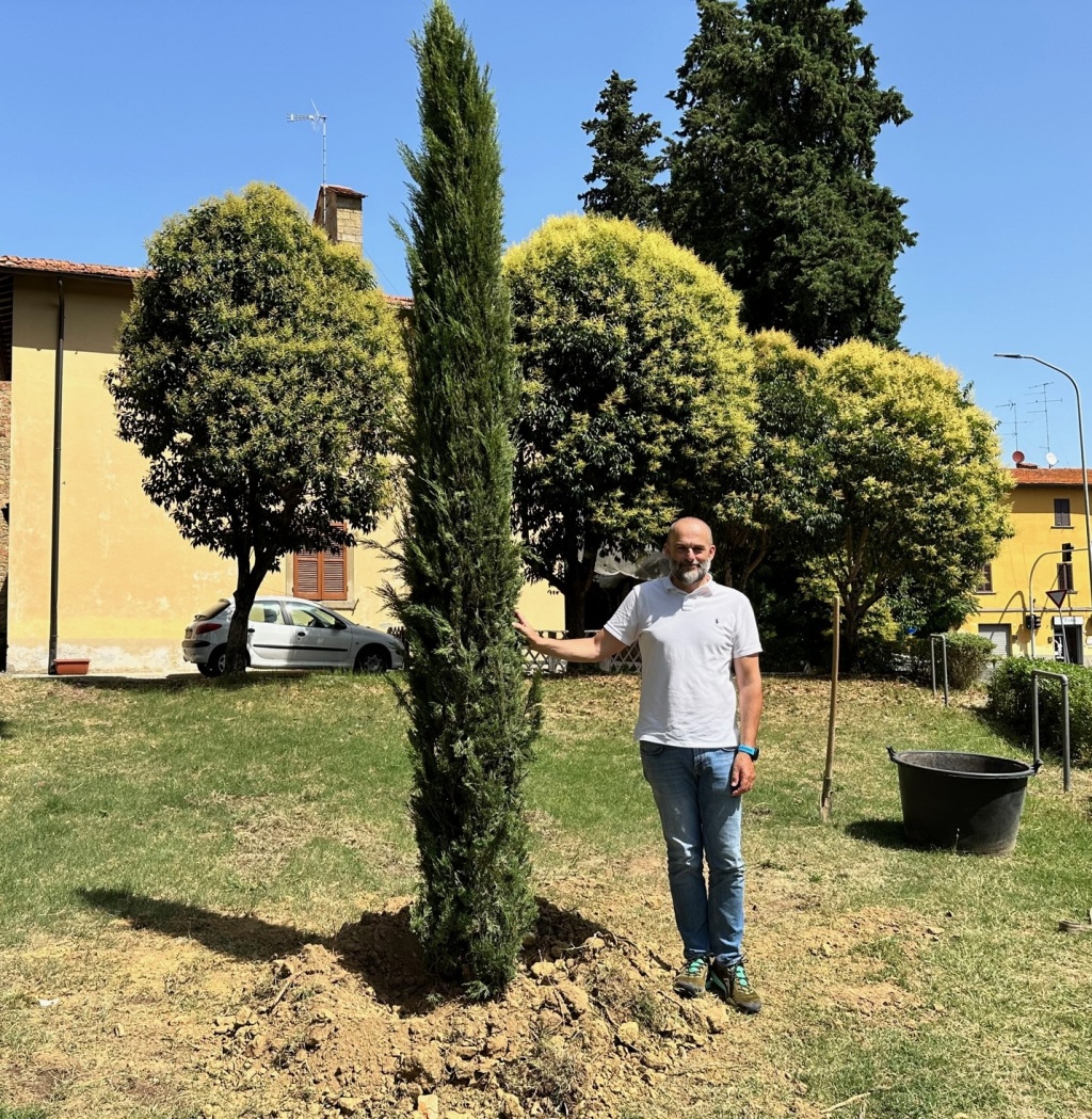Alle 11 è scattata l’ora X per l’assessore Marco Sacchetti che ha provveduto a interrare un cipresso nei giardinetti adiacenti alla chiesa di Santa Croce. Un gesto che lega Arezzo a una simbolica, ma densa di significati, catena spazio-temporale: “di alberi ne avremo sempre più bisogno, anche in ambiente urbano, viste le loro importanti funzioni di ombreggiamento e assorbimento di anidride carbonica. Pensiamo solo, proprio in corrispondenza di questi giorni, alla differenza di vivibilità tra un viale con alberi e uno privo. Mi sono raccomandato che questo cipresso venga adeguatamente annaffiato per permettergli di raggiungere lo sviluppo degli altri circostanti”.
