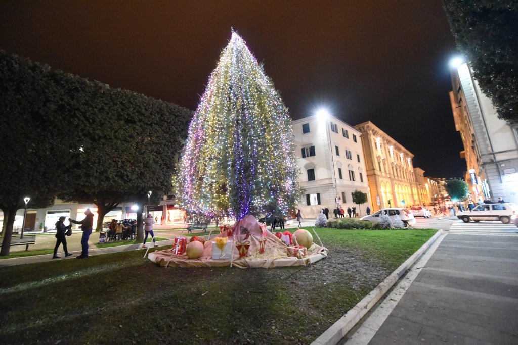 altro click, stavolta in centro, in piazza Guido Monaco, dove campeggia adesso, e resterà in funzione fino a domenica 6 gennaio, il gigantesco abete di Natale di 12 metri a beneficio di un’atmosfera che più di festa non si può.{rwgallery}