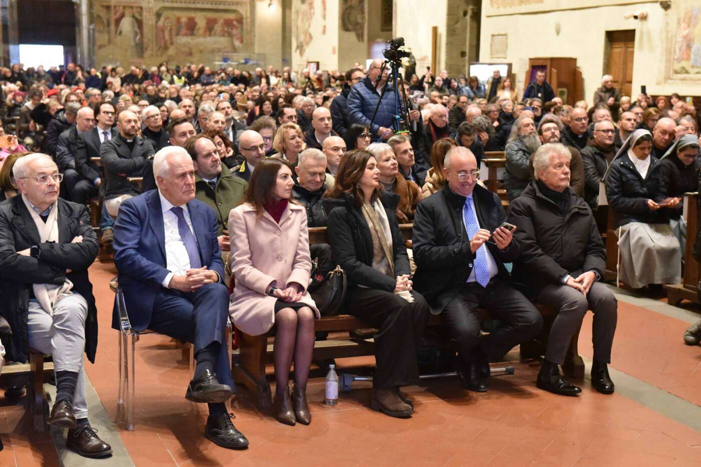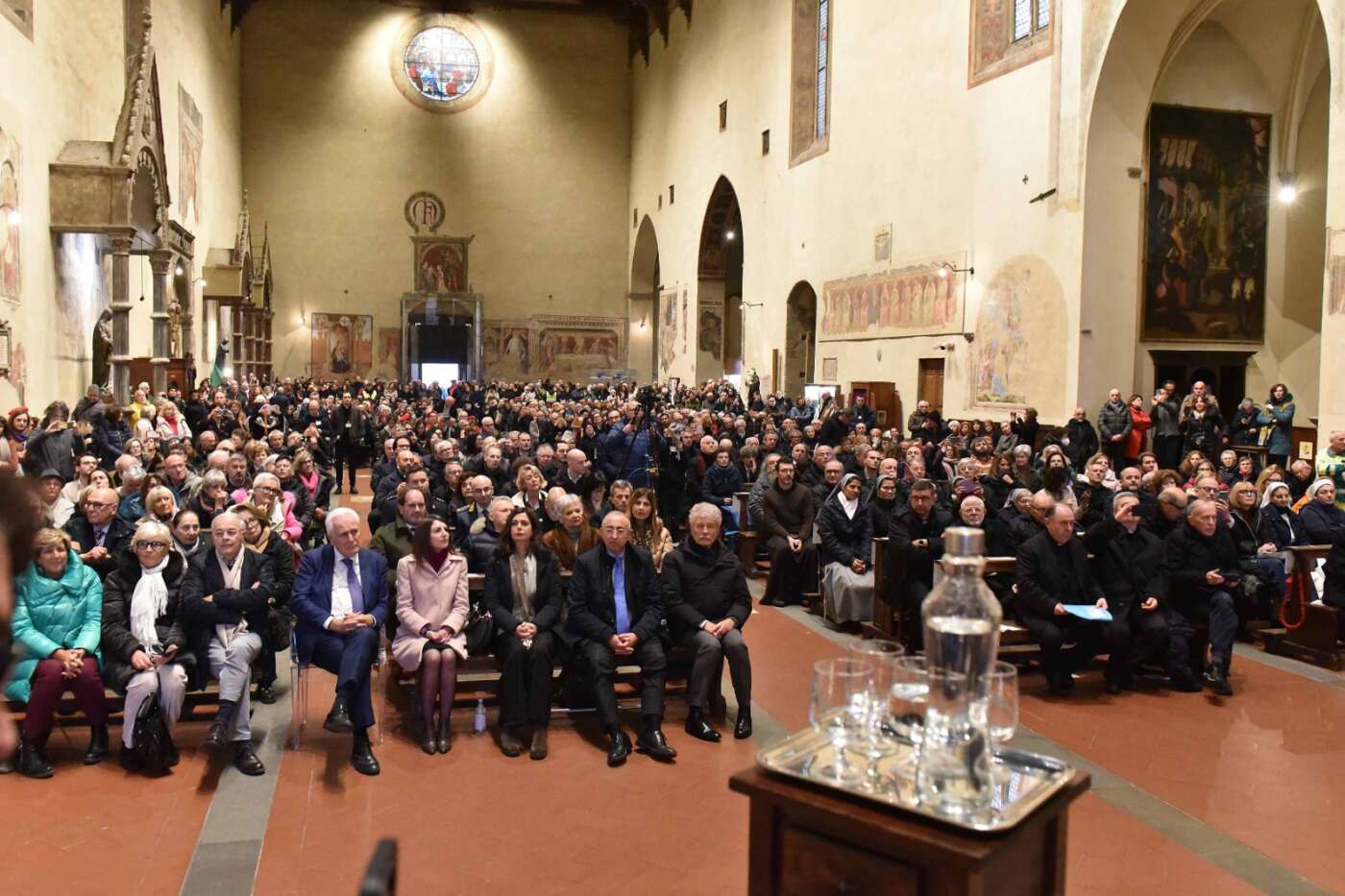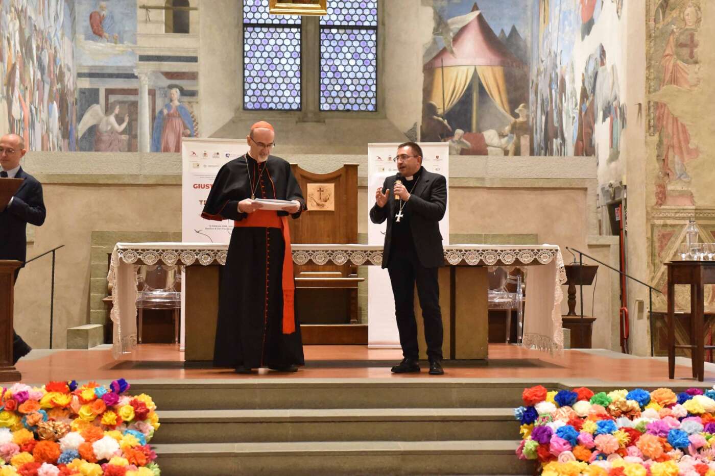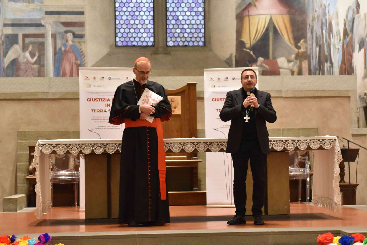 L’evento “Giustizia e pace in Terra Santa”, promosso da diocesi di Arezzo-Cortona-Sansepolcro, Rondine Cittadella della Pace e Caritas diocesana è stato accolto con grande entusiasmo e partecipazione dalla città di Arezzo. Un pomeriggio di vero dialogo dedicato a una terra martoriata e colpita da una spirale di violenza che a volte pare difficile spezzare, svoltosi in una basilica di San Francesco gremita, quasi mille i partecipanti, alla vigilia della festa della Madonna del Conforto, davanti al ciclo di affreschi della Leggenda della Vera Croce di Piero della Francesca. Un incontro di grande rilievo ecclesiale, culturale e civile, pensato per offrire strumenti di comprensione sull’attuale situazione in Terra Santa, sulla condizione delle comunità cristiane e sulle possibili vie per una pace autentica, fondata sulla giustizia, sul dialogo e sulla ricostruzione delle relazioni di fiducia.