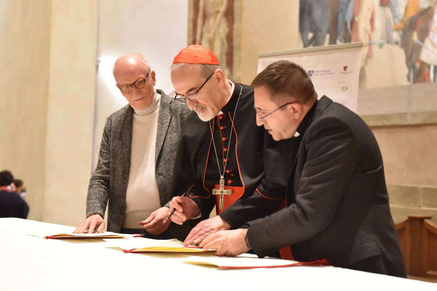 L’incontro è stato preceduto al mattino da una visita privata del Patriarca a Rondine Cittadella della Pace, durante la quale il cardinale, accompagnato dal vescovo Andrea Migliavacca e Franco Vaccari, ha conosciuto da vicino l’esperienza della Cittadella e incontrato i giovani provenienti da popoli in conflitto che scelgono di convivere insieme, trasformando il dolore vissuto in un cammino di riconciliazione e di pace.