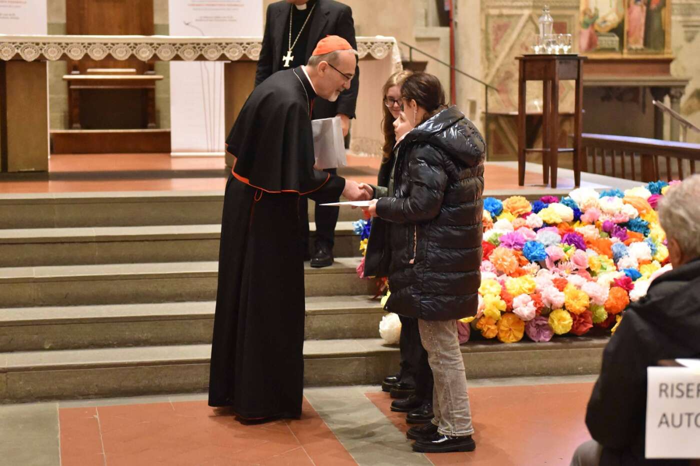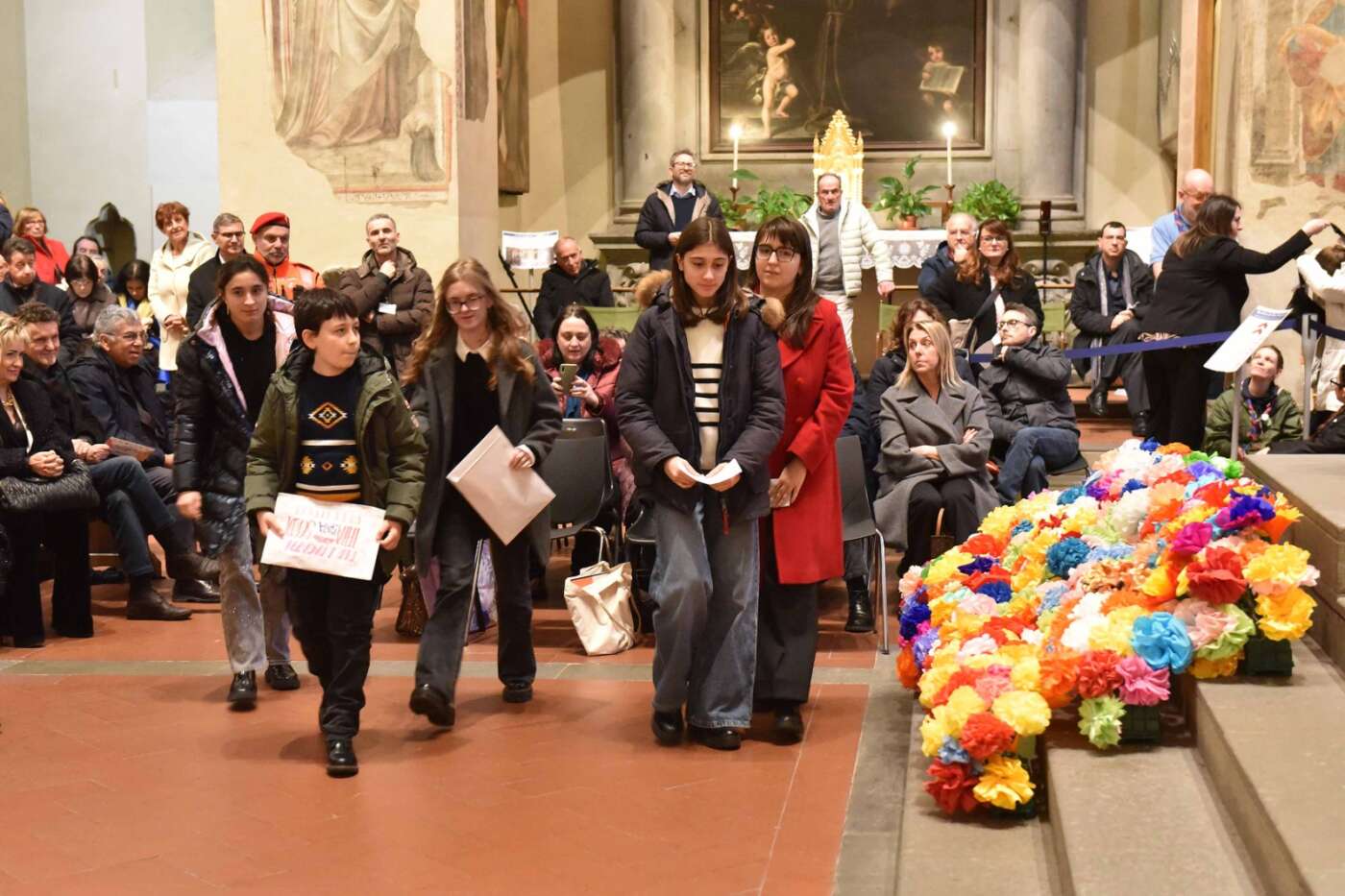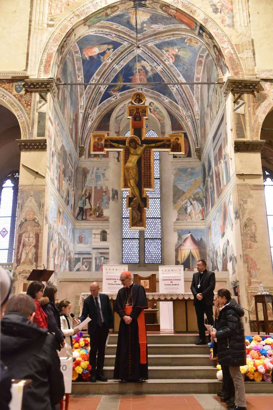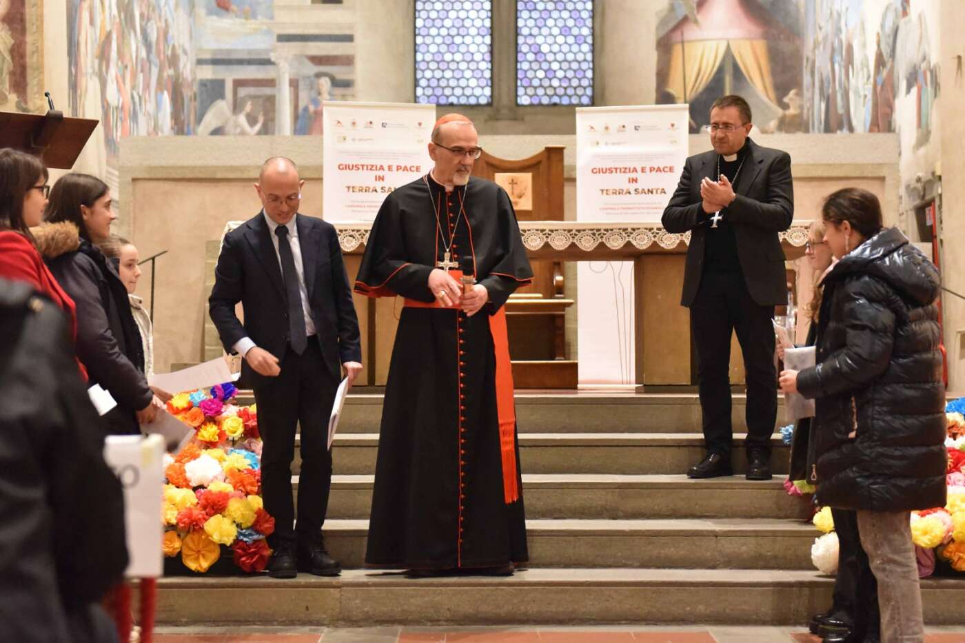 Ultimo atto dell’evento ha visto come protagonisti i bambini delle scuole che hanno preso parte al progetto “Petali di pace per la Terra Santa”. La basilica era stata infatti ornata di fiori realizzati dai ragazzi delle scuole e del catechismo grazie all’iniziativa promossa dalla diocesi con il Gruppo Pax Christi di Arezzo. Il messaggio è un invito alla convivialità delle differenze: i petali rimandano alle differenze; le radici invece affondano nell’unica terra. Ai fiori i ragazzi hanno affidato le loro parole di pace, amicizia e vicinanza, messaggi poi consegnati al cardinale Pizzaballa affinché giungano ai bambini e ai giovani della Terra Santa.