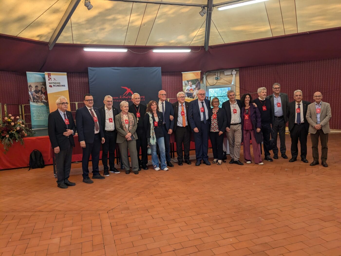 Grande partecipazione inoltre delle realtà socio-economiche del Friuli che hanno aderito come ha ricordato Piero Petrucco, vicepresidente reggente Confindustria Udine condividendo una proposta: “Sarebbe bello che, come rappresentanti del mondo del lavoro e delle imprese, cogliessimo da questa giornata l’opportunità di costruire un progetto concreto che suggelli una collaborazione con Rondine. Udine e Arezzo, in modo quasi casuale, si sono incrociate qui, e vorrei che questo incontro fosse solo l’inizio di qualcosa di solido e duraturo. Non deve esaurirsi in una giornata piacevole, ma rappresentare un punto di contatto anche per il futuro”. Tra le varie sigle e enti che hanno aderito Fondazione Friuli, Confindustria Friuli Venezia Giulia con il Presidente Pierluigi Zamò, Confartigianato Udine, CNA FVG, Legacoop FVG, CiGL FVG, CISL FVG, UR UIL FVG, CGIL Udine, CISL UD, PrimaCassa Credito Cooperativo FVG con il presidente Giuseppe Graffi Brunoro; inoltre preziosa la presenza del Rettore dell’Università di Udine, Roberto Pinton e di Chiara Tempo, in rappresentanza del Liceo Percoto di Udine che già da anni ha avviato nell’Istituto una Sezione Rondine adottando il Metodo della Cittadella della Pace e formare gli studenti alla trasformazione del conflitto . Infine Rappresentanti della Chiesa Evangelica Metodista di Udine, della Chiesa Serbo Ortodossa, (parrocchia di San Stefano Nuovo a Udine), del Patriarcato ortodosso di Costantinopoli, del COREIS – Comunità Religiosa Islamica Italiana. Presenti inoltre Giovanni Galli, da tempo vicino alla Cittadella e il vescovo Andrea Migliavacca che ha dato il benvenuto nella Diocesi di Arezzo-Cortona-Sansepolcro.