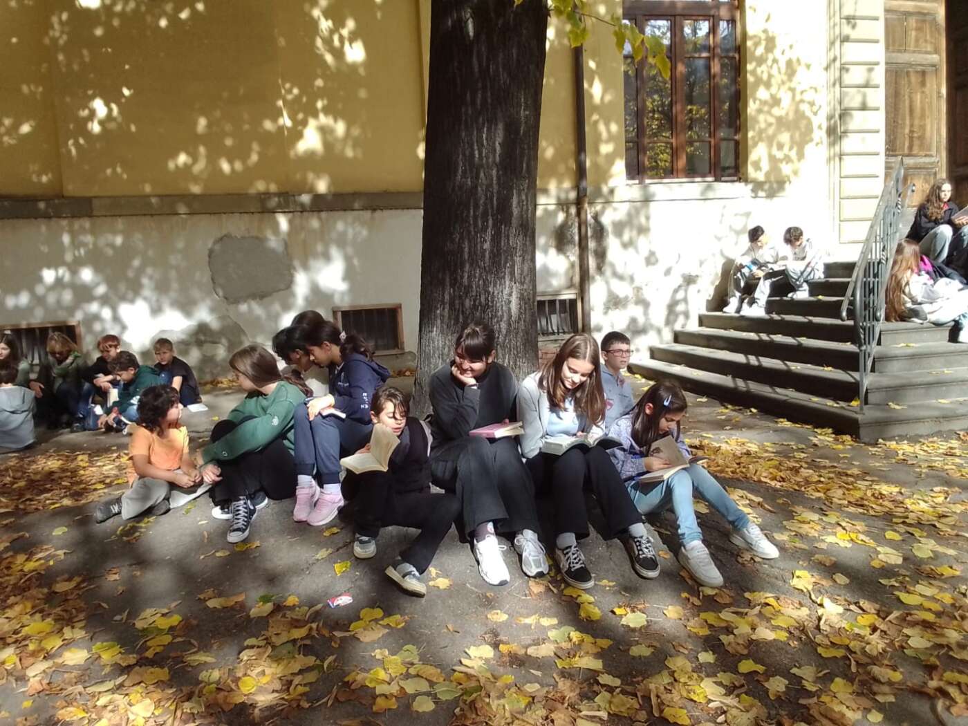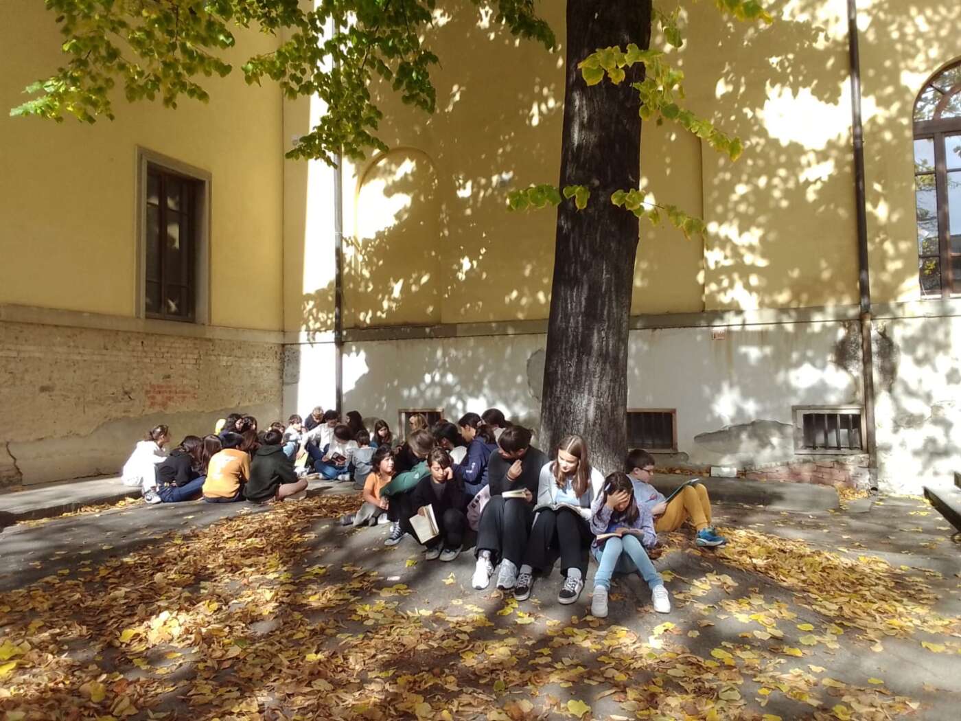 Durante la mattinata, gli studenti della Cesalpino si sono uniti agli alunni del Liceo per un momento di lettura silenziosa nel cortile dell’istituto.