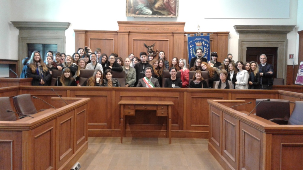 Nei giorni scorsi un gruppo di circa 43 tra studenti e docenti sono stati ricevuti dal sindaco nella sala consigliare. Oltre al consueto benvenuto nella città castiglionese il sindaco ha sollecitato gli studenti ad individuare sia gli aspetti positivi che negativi sulla città di Castiglion Fiorentino. Un simpatico intermezzo che ha messo in evidenza anche gli usi ed i costumi diversi dei due popoli come, per esempio, le norme di comportamento che si tengono in prossimità delle strisce pedonali.