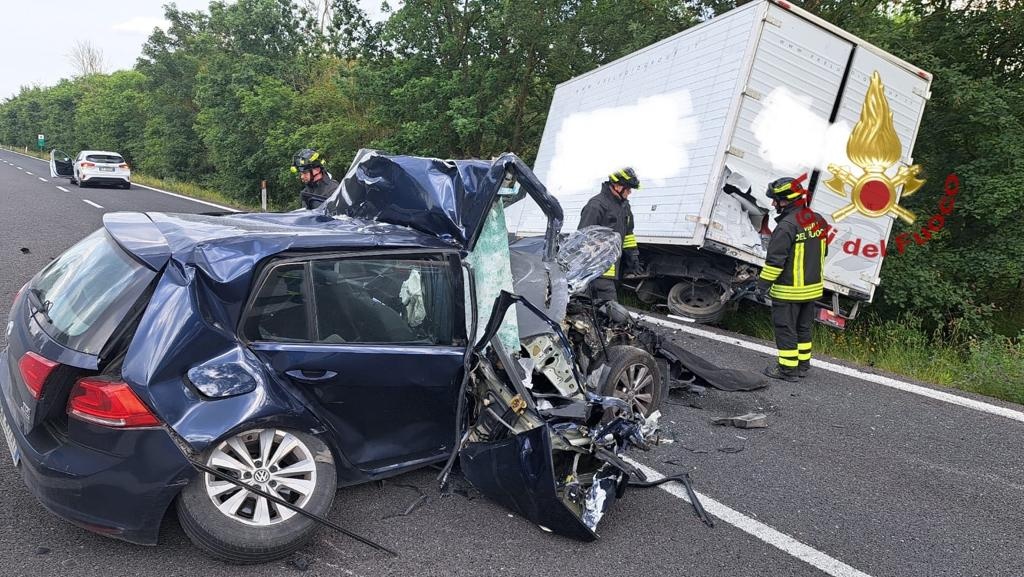 Auto disintegrata nello scontro con un furgone: illesi gli occupanti