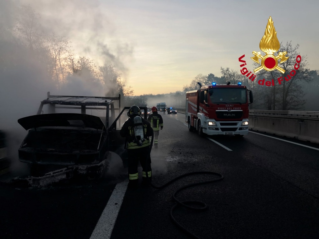 Autostrada, a fuoco un furgone. Nessuna persona coinvolta – Foto