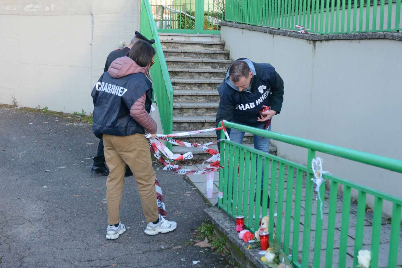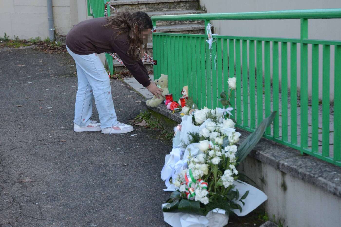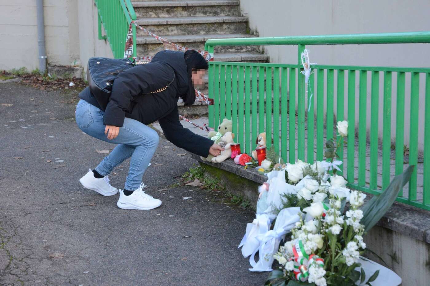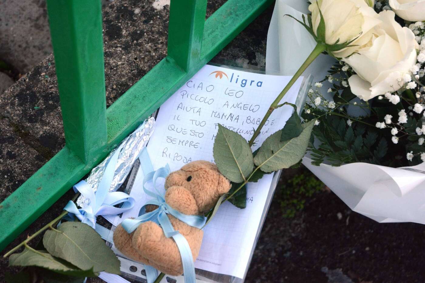 La piccola cancellata che delimita il nido è ormai sommersa da fiori, giocattoli, pupazzi. Biglietti scritti con mano tremante, alcuni dai genitori degli altri bimbi, altri dai giovani del paese o dagli anziani che non hanno voluto mancare.