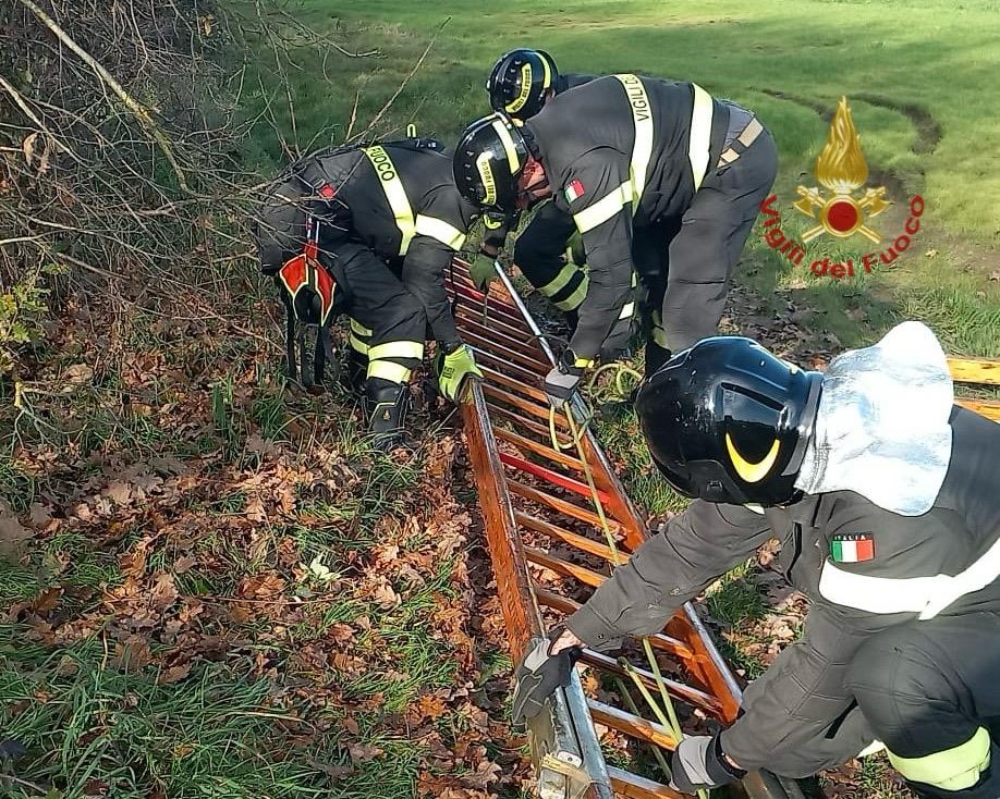 I soccorritori hanno quindi predisposto le operazioni di recupero utilizzando una scala italiana e specifiche tecniche SAF (Speleo Alpino Fluviali), calandosi sul fondo del pozzo per raggiungere l’animale in sicurezza. L’intervento si è concluso positivamente: il cane è stato recuperato e riconsegnato al proprietario, riportando fortunatamente solo lievi ferite alle zampe.
