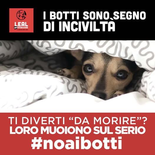 Sul fronte della tutela animale, LEAL rilancia la campagna social “NO AI BOTTI”: il Capodanno, sottolinea l’associazione, coincide troppo spesso con una notte di terrore per animali domestici e selvatici.