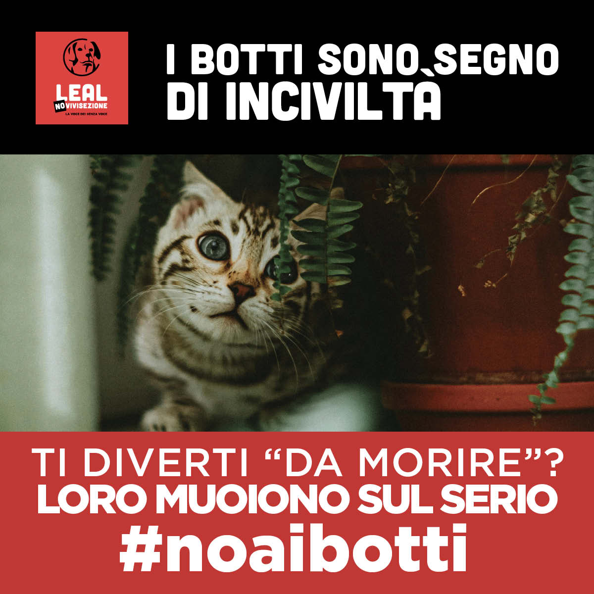 Sulla stessa linea, LNDC Animal Protection lancia un claim diretto: “Il botto che cambia tutto? È quello che NON fai.”. L’associazione chiede ai sindaci di vietare botti e petardi per ragioni di sicurezza e per proteggere gli animali, spesso “vittime silenziose del fragore di Capodanno”.