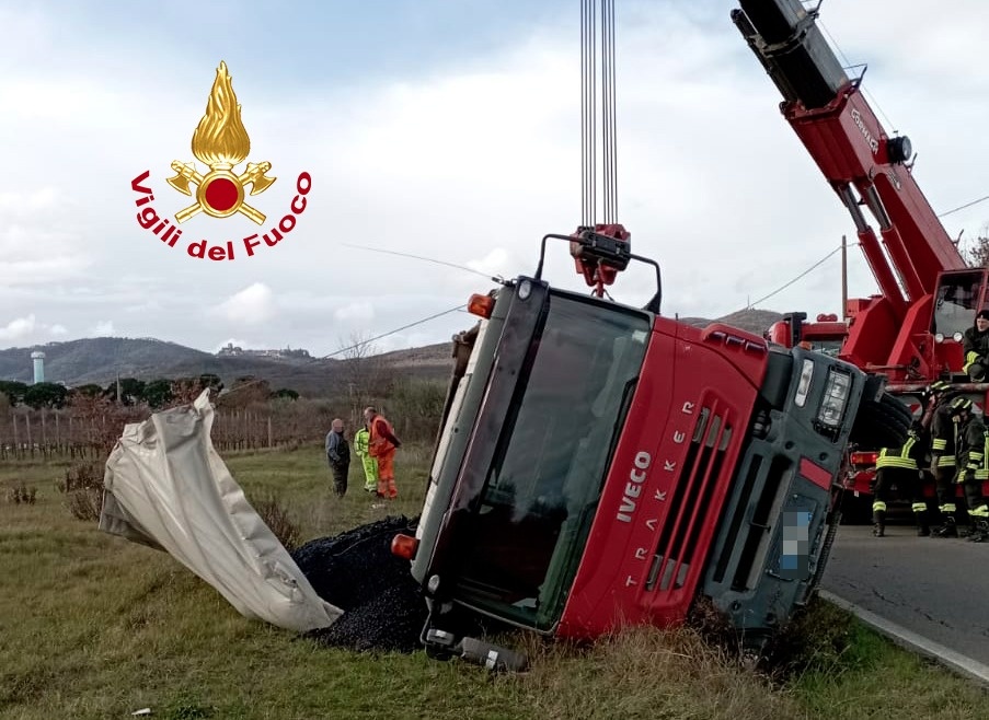 Non risultano persone coinvolte. I Vigili del Fuoco, intervenuti anche con l’autogru, hanno provveduto a riportare l’assetto del veicolo su gomma e sulla sede stradale per la successiva rimozione. Circolazione bloccata durante le manovre di ribaltamento.