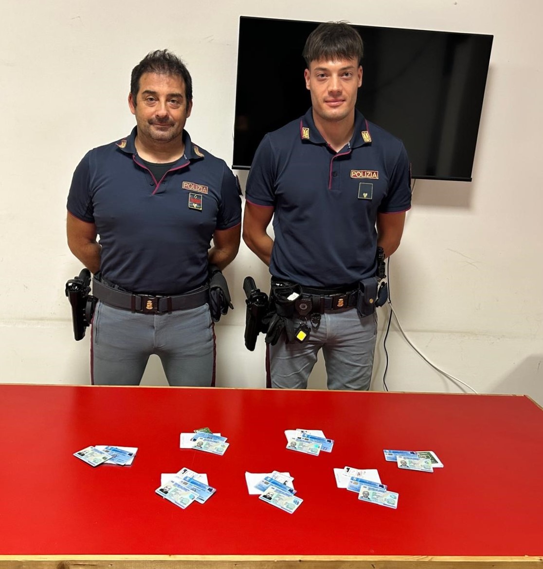 La ricerca certosina ha confermato i sospetti dei poliziotti: ben nascosto nel vano dei fusibili sotto al cruscotto, è stato, infatti, trovato un involucro contenente 7 carte d’identità valide per l’espatrio, apparentemente rilasciate da diversi Comuni d’Italia a persone diverse, ma tutte con impresse le fotografie dei due fermati.