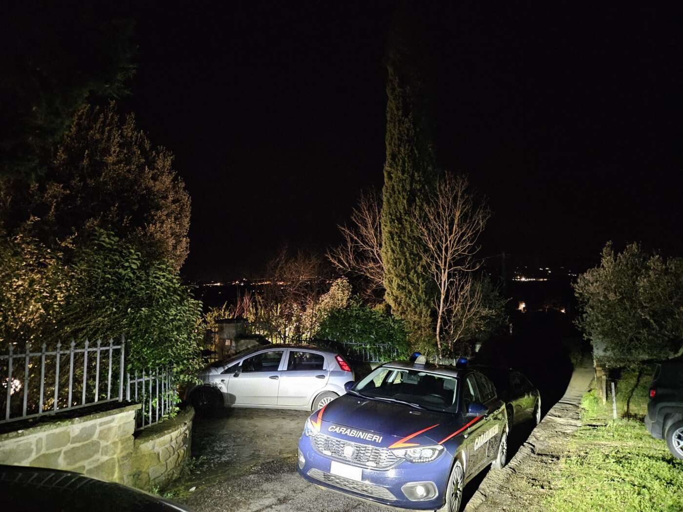 Secondo le prime ricostruzioni, pochi minuti dopo la banda ha rivolto le sue attenzioni verso una villa distante poche decine di metri, dal lato opposto della strada. Anche in questo caso i ladri sono riusciti ad entrare all’interno, ma l’attivazione del sistema di allarme, alle 20.39, ha messo in allerta i presenti. La famiglia all’interno dell’abitazione si è trovata di fronte i malviventi, che, scoperti, hanno abbandonato la refurtiva lanciandola contro il nipote del proprietario di casa, un avvocato aretino, L.P.