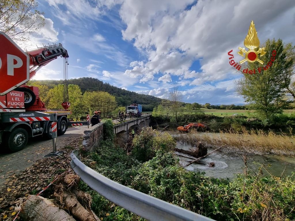 I Vigili del Fuoco sono intervenuti con la squadra di Bibbiena e degli operatori fluviali che si sono calati dal ponte al fiume. I tronchi che ostruivano il passaggio dell’acqua  sono stati tagliati e rimossi, anche con l’ausilio dell’autogru che ha spostato gli alberi più grandi, in cooperazione col personale del Consorzio di Bonifica.