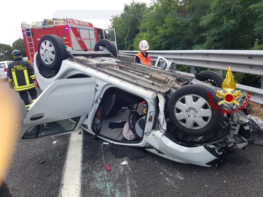 Tamponamento in autostrada, auto cappottata, quattro feriti – Foto