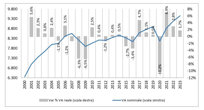 Il valore aggiunto della provincia di Arezzo si dovrebbe quindi attestare a fine 2020 a circa 8,2 miliardi di euro, in flessione del 10,2% in termini reali.