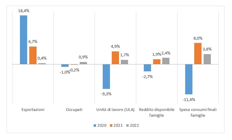 “Ben più ampia sarà”, conclude Randellini, “la flessione della spesa per consumi finali delle famiglie (-11,4%), sulla quale influiscono in maniera determinante non solo il diminuito potere di acquisto ma anche il clima diffuso di incertezza sulla situazione attuale e, in particolare, sulle prospettive future. Nel 2021 si dovrebbe comunque delineare, salvo ulteriori crisi innescate dall’emergenza sanitaria, un parziale recupero dei consumi (+8%), che si estenderebbe poi in misura minore anche al 2022 (+3,8%). Su questo scenario ancora pervaso da molte incertezze saranno certamente decisivi gli interventi nazionali per modernizzare il sistema economico italiano e quelli europei per sostenere con risorse aggiuntive la ripresa. Interventi che potranno accelerare in maniera molto significativa la ripresa nel medio periodo e permetteranno di affrontare e risolvere alcuni dei problemi strutturali che hanno condizionato negativamente, ancora prima dell’emergenza Covid-19, l’economia italiana”.