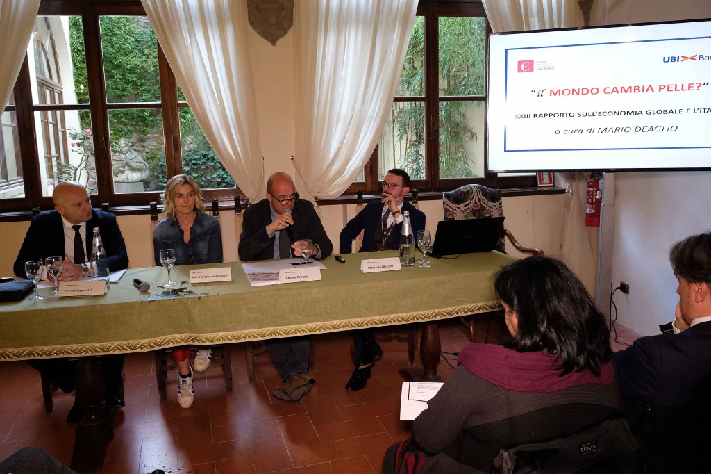 Si è svolta ad Arezzo presso la casa Museo dell’Antiquariato Ivan Bruschi la presentazione di “Il mondo cambia pelle?”, a cura del prof. Mario Deaglio, che analizza i trend macroeconomici e le dinamiche geopolitiche degli ultimi dodici mesi, con uno sguardo specifico al ruolo che l’Italia può assumere nell’attuale congiuntura economica e in relazione alle dinamiche internazionali. L’incontro fa parte di una serie di eventi, iniziata lo scorso 21 gennaio con la presentazione del Rapporto a Milano, che toccherà varie città d’Italia per concludersi a Roma il prossimo giugno.