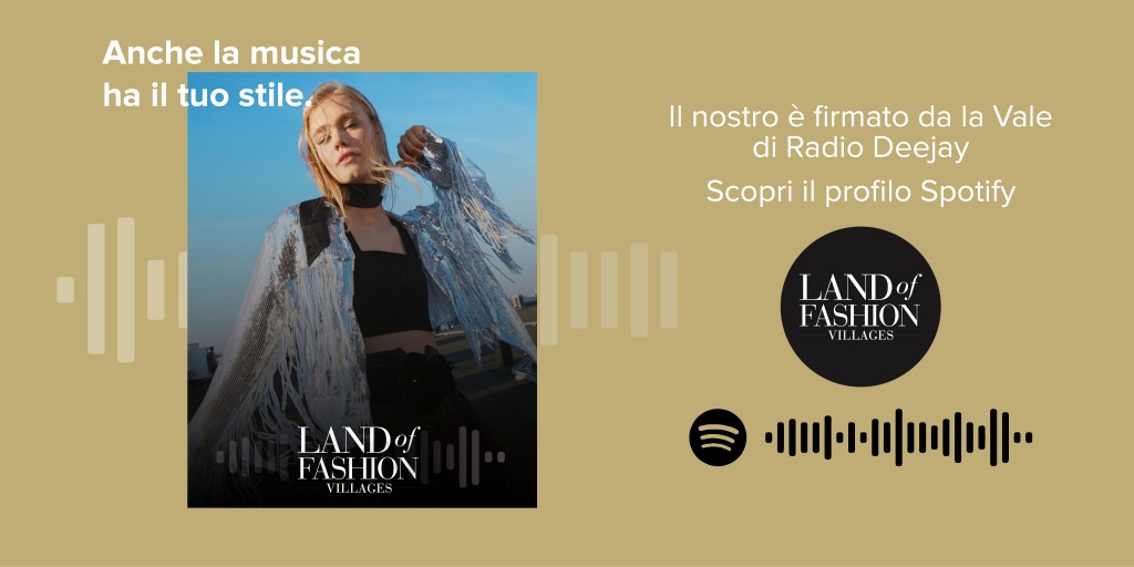 “Il marketing sonoro è il mezzo più bello e sontuoso a disposizione della moderna comunicazione. È un modo di caratterizzare un marchio poco invasivo, poco percepibile, ma davvero esperienziale. Quando ascolti non interpreti, non “capisci”, semplicemente vivi il messaggio, non ci sono tramiti tra il suono e le emozioni”. Parole di La Vale, al secolo Valentina Ricci, brillante conduttrice, insieme a La Pina e Diego, di “Pinocchio” su Radio Deejay e “con una fan base davvero importante – spiega Luca Zaccomer, marketing director Land Of Fashion – a cui rilancerà il nostro profilo e le nostre proposte musicali”. “Tanta visibilità sonora – gli fa eco Enrico Bracciali, marketing Valdichiana Village – con l’obiettivo di andare ad intercettare un touchpoint per noi ancora inesplorato, quello appunto della musica”.