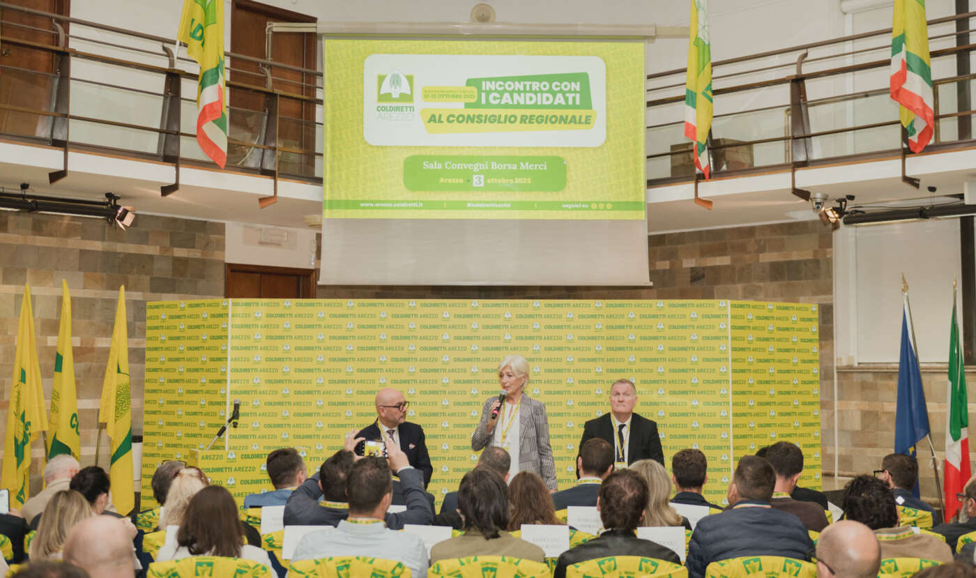 L’incontro con i candidati aretini al consiglio regionale della Toscana è andato in scena alla Borsa Merci di Arezzo, in platea i dirigenti dell’associazione di categoria e gli aspiranti consiglieri regionali, presentato dal Presidente di Coldiretti Arezzo Lidia Castellucci, dal Direttore di Coldiretti Toscana Angelo Corsetti e dal Direttore di Coldiretti Arezzo Raffallo Betti il manifesto “L’orgoglio di coltivare futuro”.
