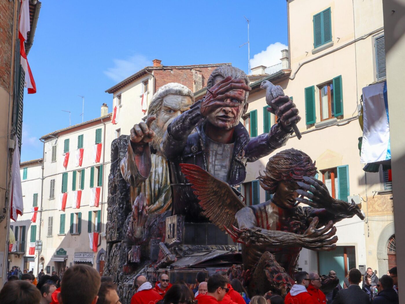 E’ una domenica baciata dal sole quella della prima uscita della 486^ edizione del Carnevale di Foiano della Chiana, il più antico d’Italia. Alla presenza del presidente della Regione Toscana Eugenio Giani, del Prefetto di Arezzo Clemente Di Nuzzo e del sindaco di Foiano Jacopo Franci, con il pubblico delle grandi occasioni, puntuali in mattinata si sono aperti gli “uscioni” dei quattro cantieri, da cui sono usciti i carri: straordinarie creazioni alle quali hanno lavorato per mesi i maestri della cartapesta e che oggi saranno al vaglio della giuria, sfilando secondo l’ordine di estrazione. Solo il giorno di chiusura della kermesse, il prossimo 9 marzo, conosceremo il nome del carro vincitore del Carnevale 2025.